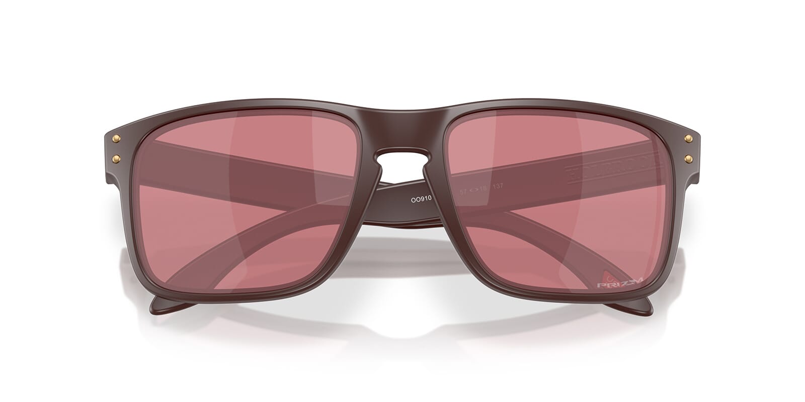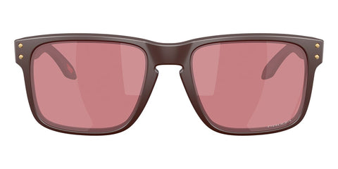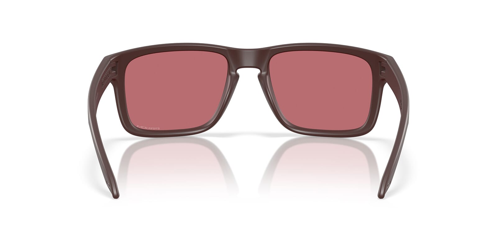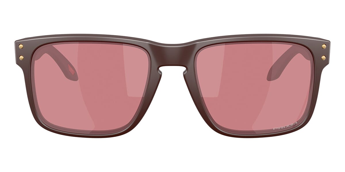 This square Oakley sunglass comes in a matte grenache frame with prizm dark golf lenses.