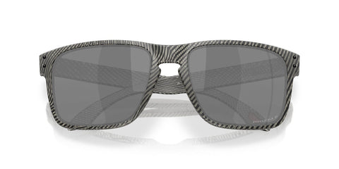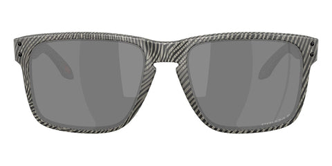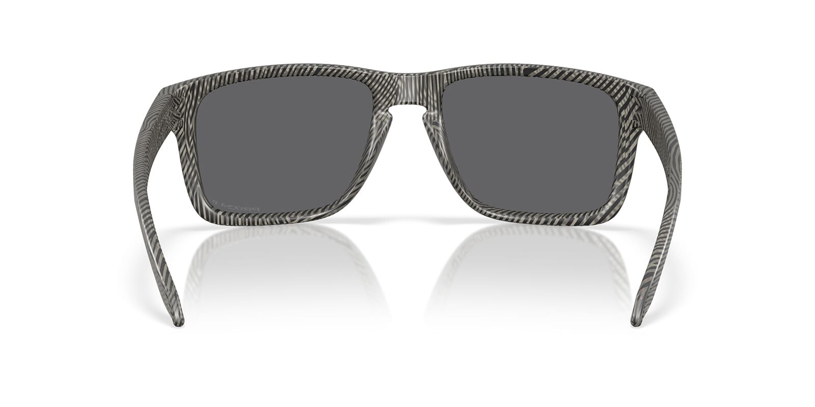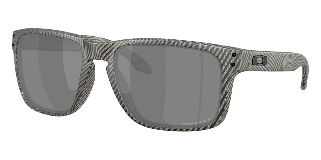 This square Oakley sunglass comes in a matte grey ink fingerprint frame with prizm black polarised lenses.
