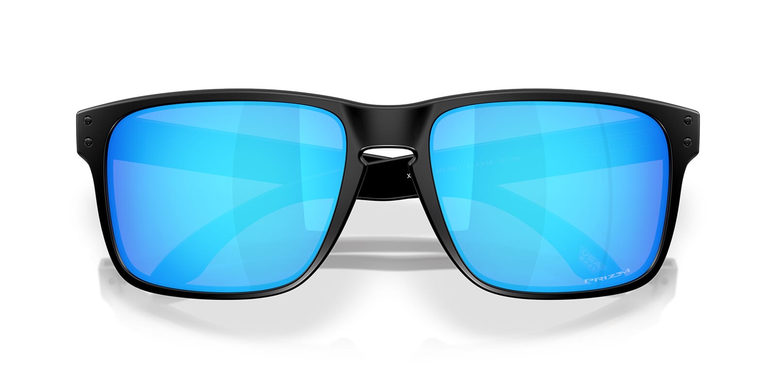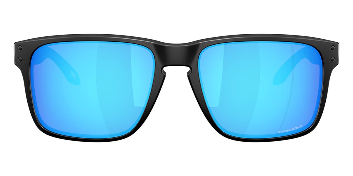 This rectangular Oakley sunglass comes in a matte black frame with prizm sapphire lenses.