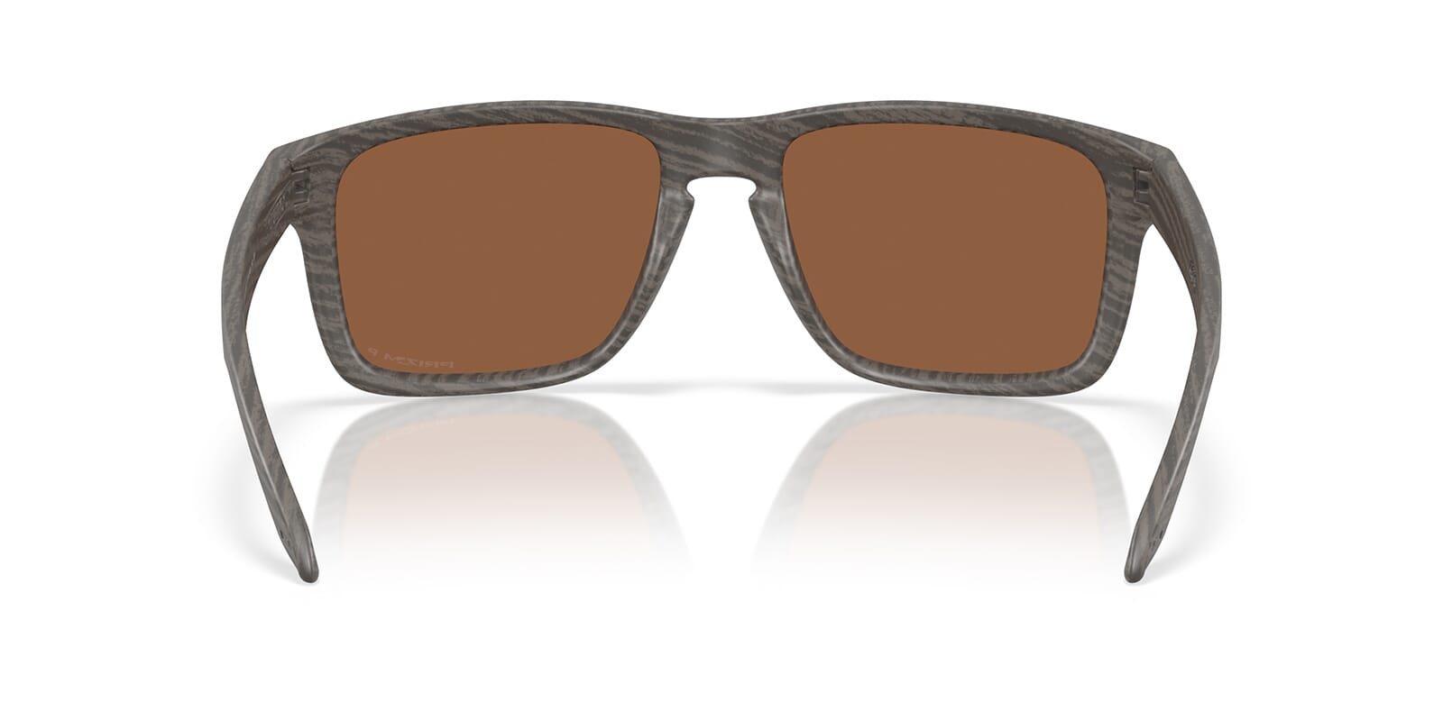 This rectangular Oakley sunglass comes in a woodgrain frame with prizm tungsten polarised lenses.