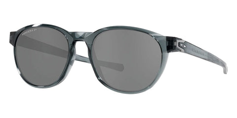 This round Oakley sunglass comes in a crystal black frame with prizm black polarised lenses.