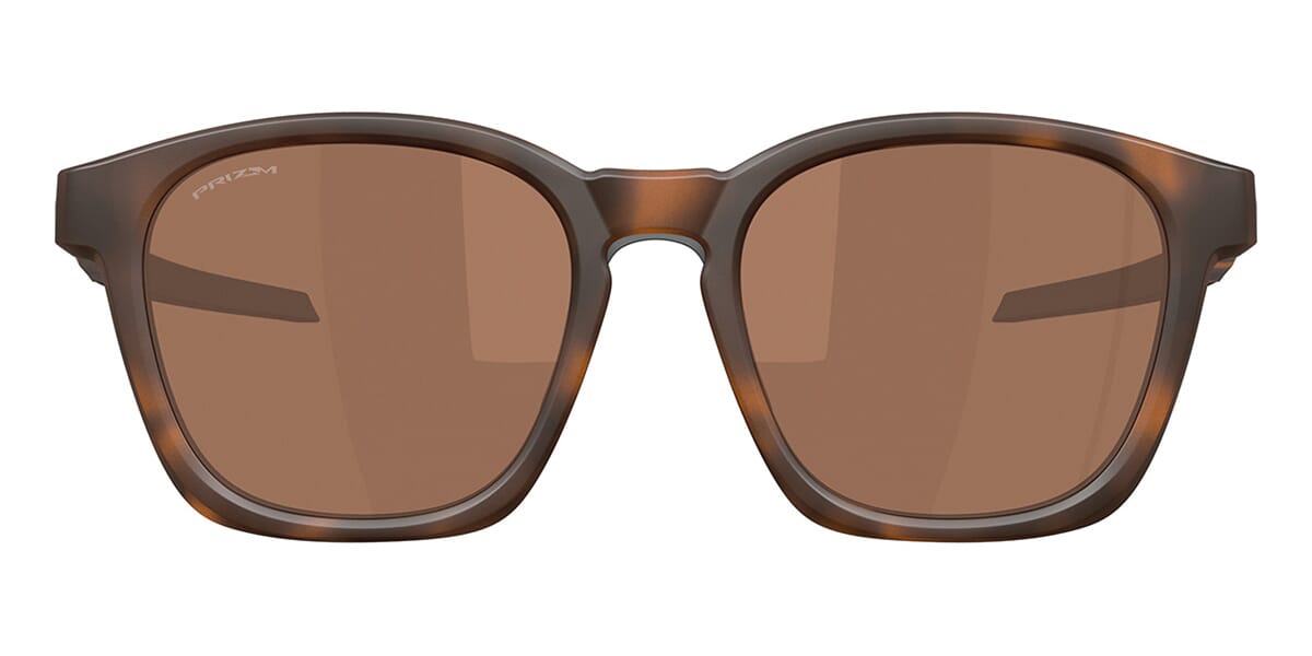 This square Oakley sunglass comes in a matte brown tortoise frame with prizm tungsten lenses.