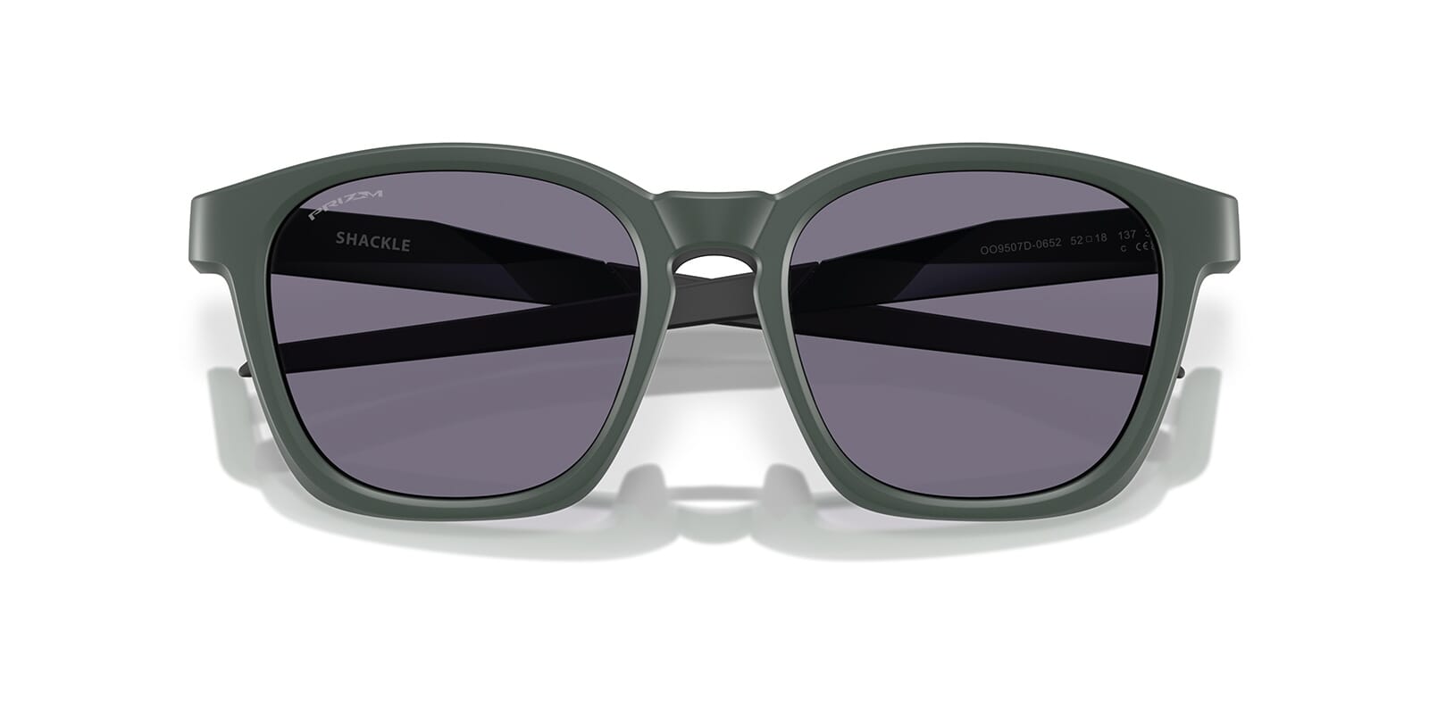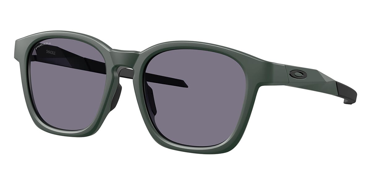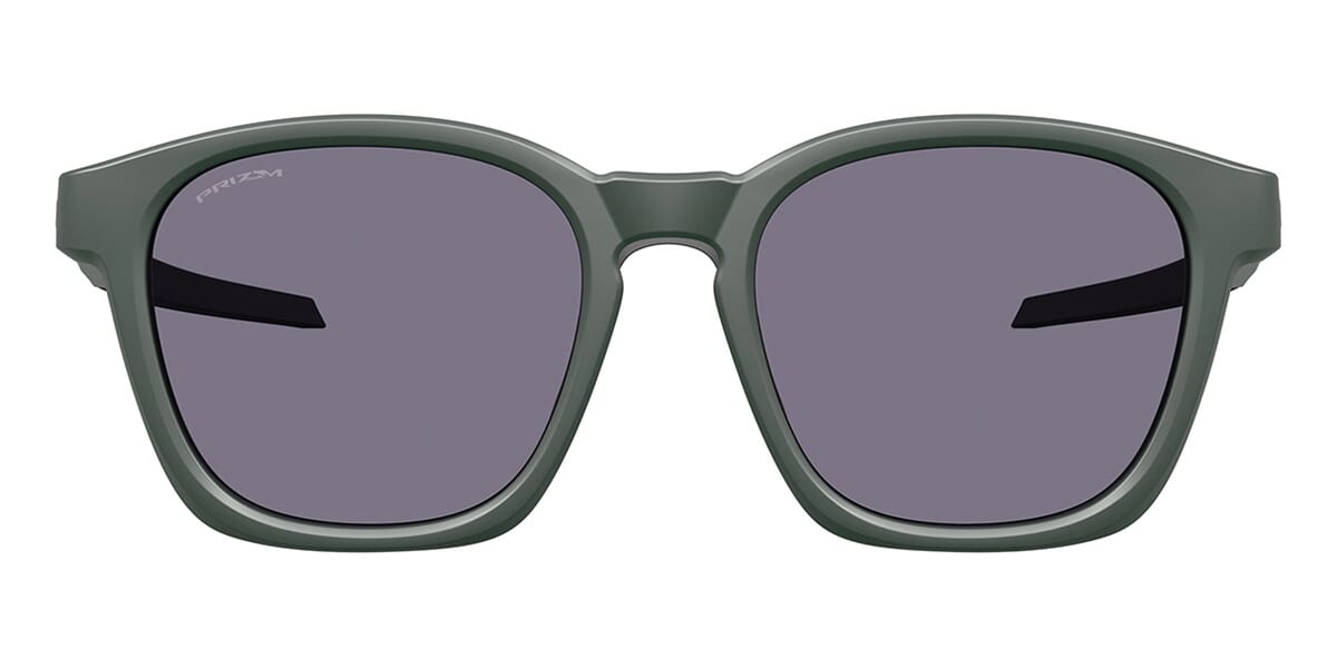 This square Oakley sunglass comes in a matte hunter green frame with prizm grey lenses.