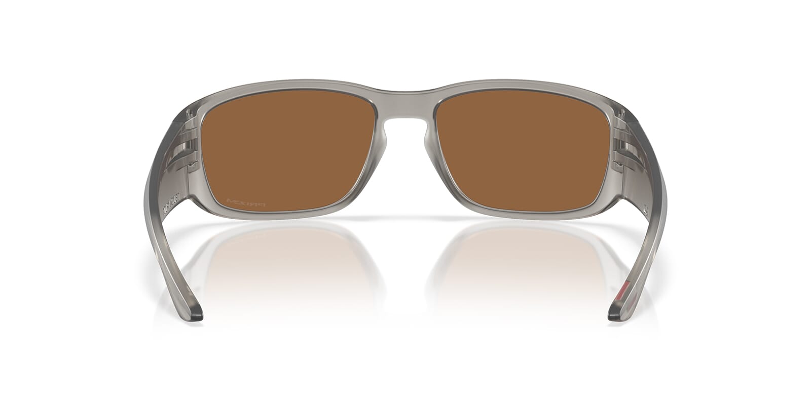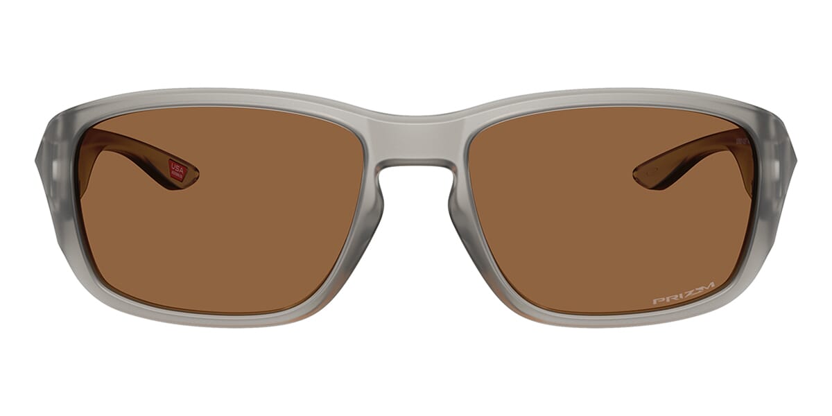 This square Oakley sunglass comes in a matte grey smoke frame with prizm bronze lenses.