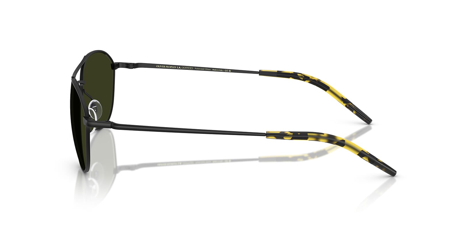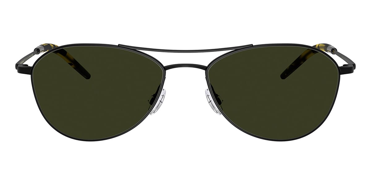 This aviator Oliver Peoples sunglass comes in a matte black frame with g15 green polarised lenses.