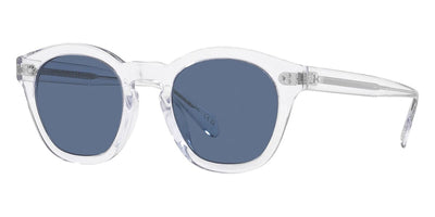 This square Oliver Peoples sunglass comes in a dm2 frame with blue lenses.