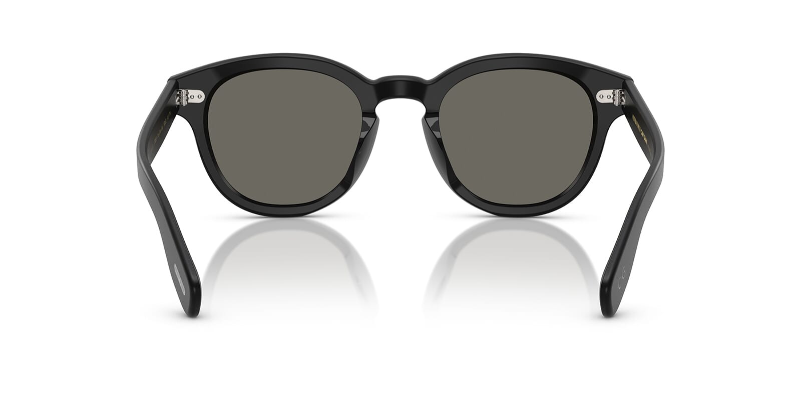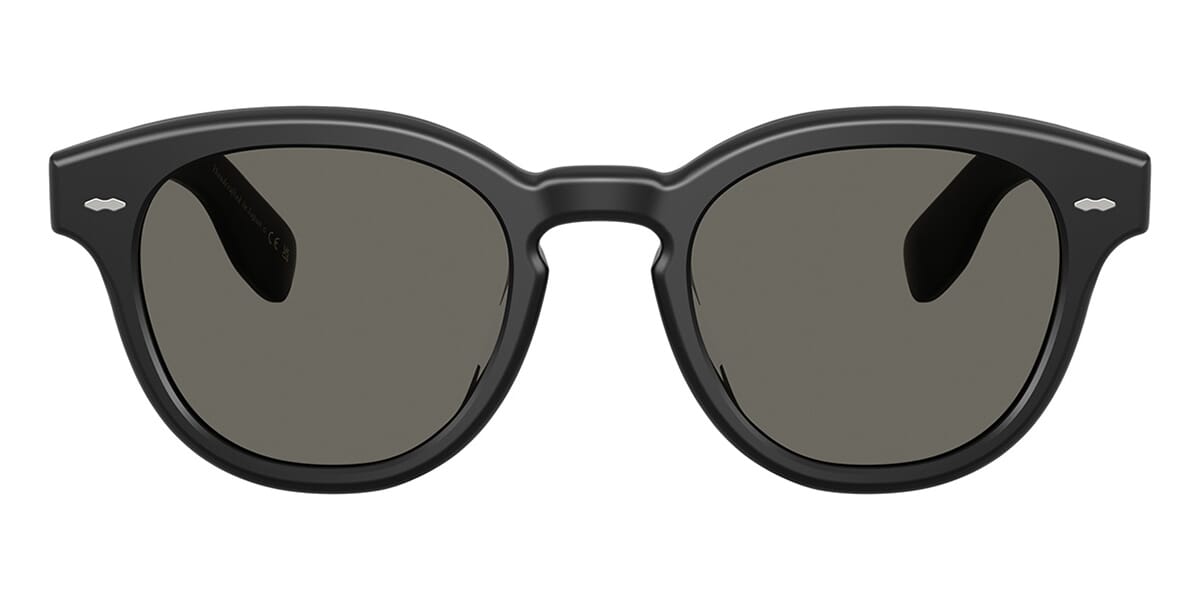 This round Oliver Peoples sunglass comes in a semi-matte black frame with carbon grey lenses.