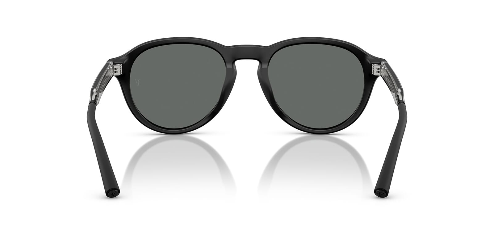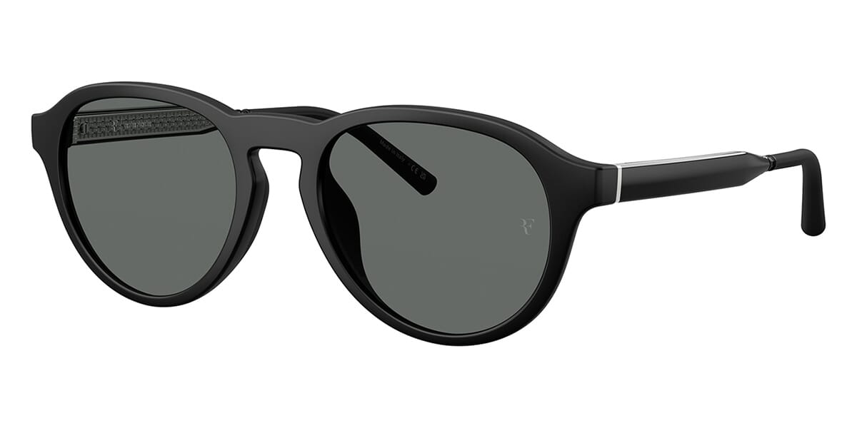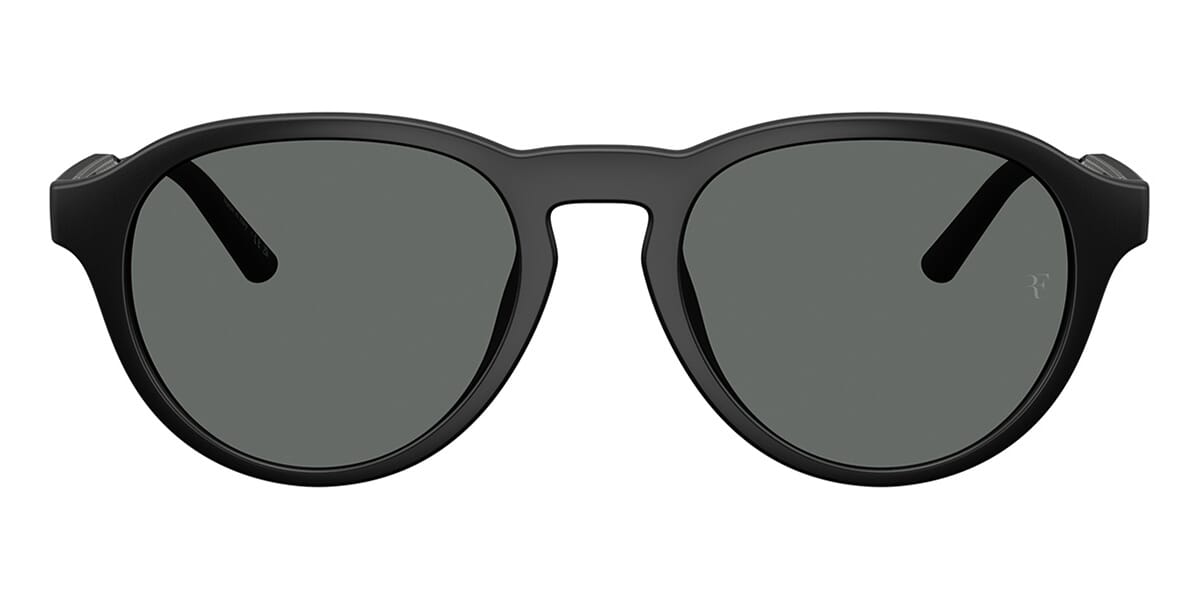 This round Oliver Peoples sunglass comes in a semi matte black frame with grey polarised lenses.