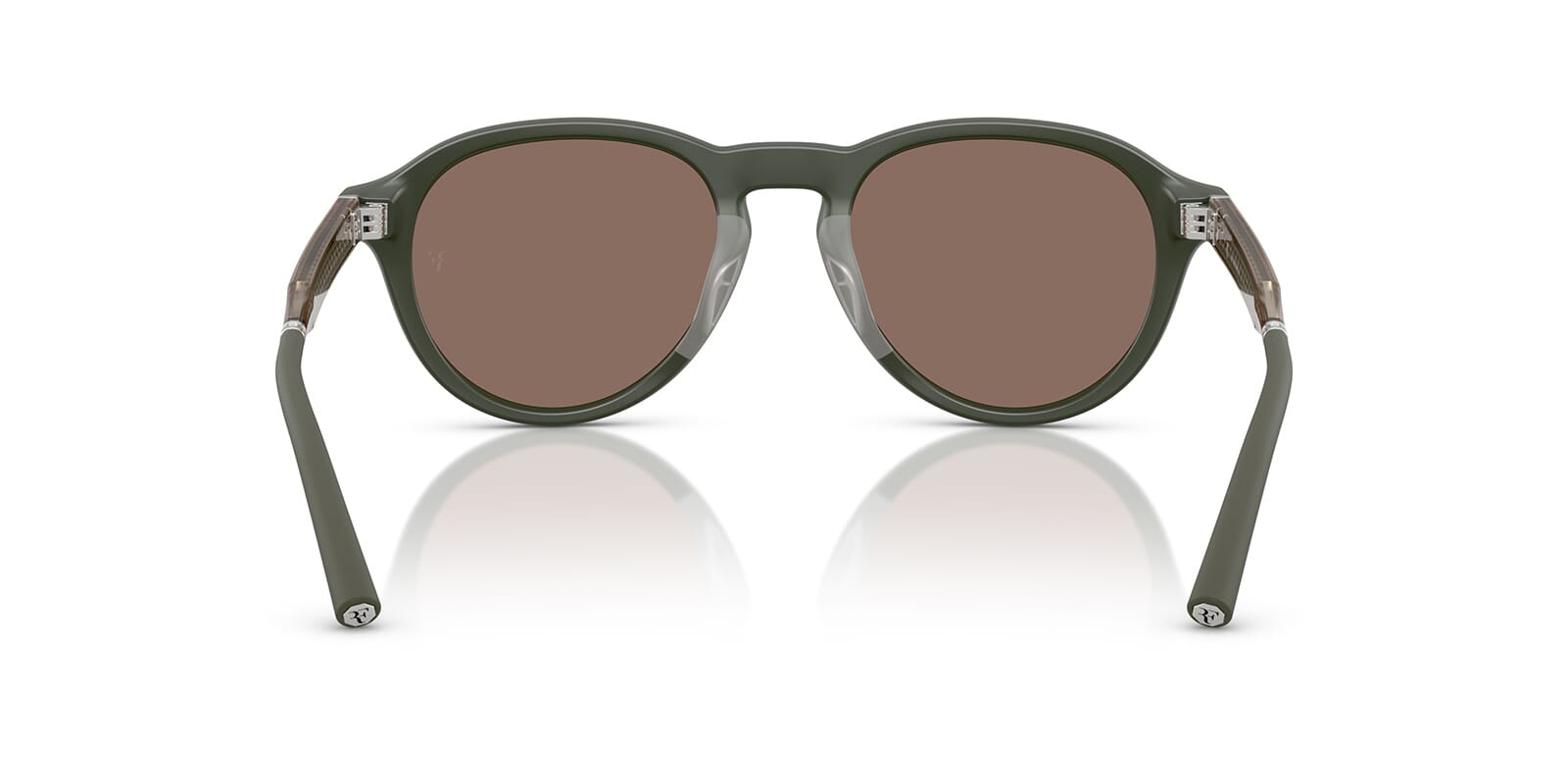 This round Oliver Peoples sunglass comes in a green smoke frame with sierra flash mirror lenses.