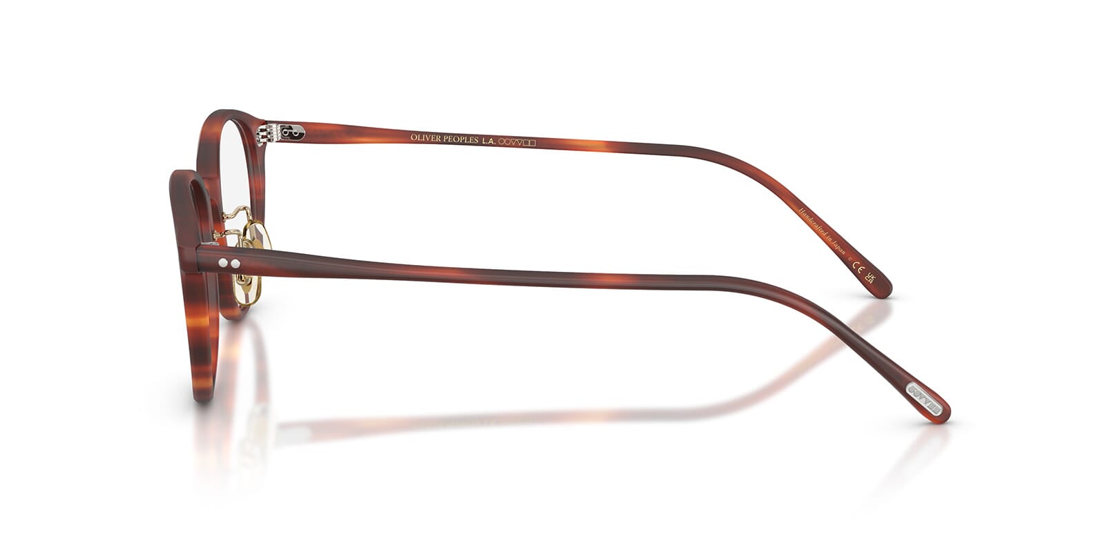 This round Oliver Peoples optical comes in a semi matte tuscany tortoise frame.