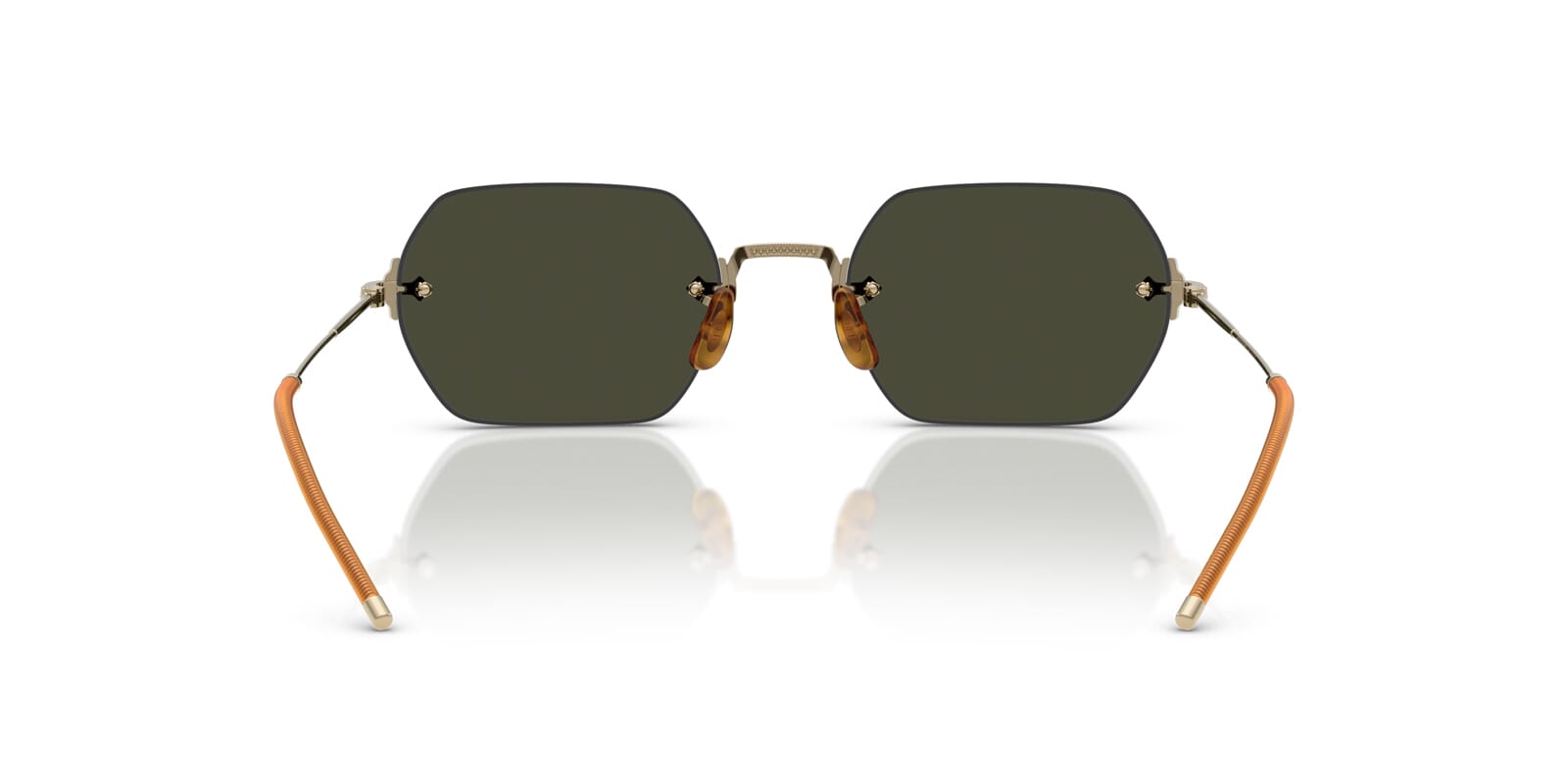 This rectangular Oliver Peoples sunglass comes in a gold frame with g-15 green lenses.