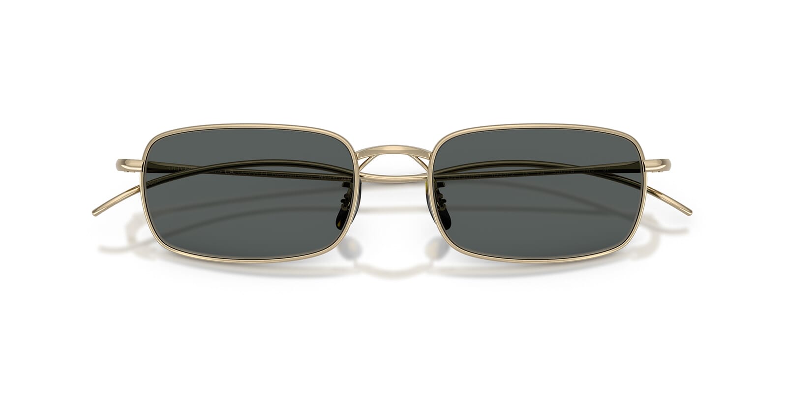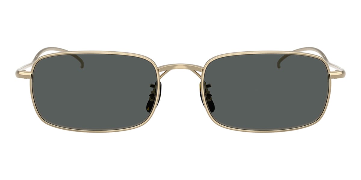 This rectangular Oliver Peoples sunglass comes in a gold frame with midnight express polarised lenses.