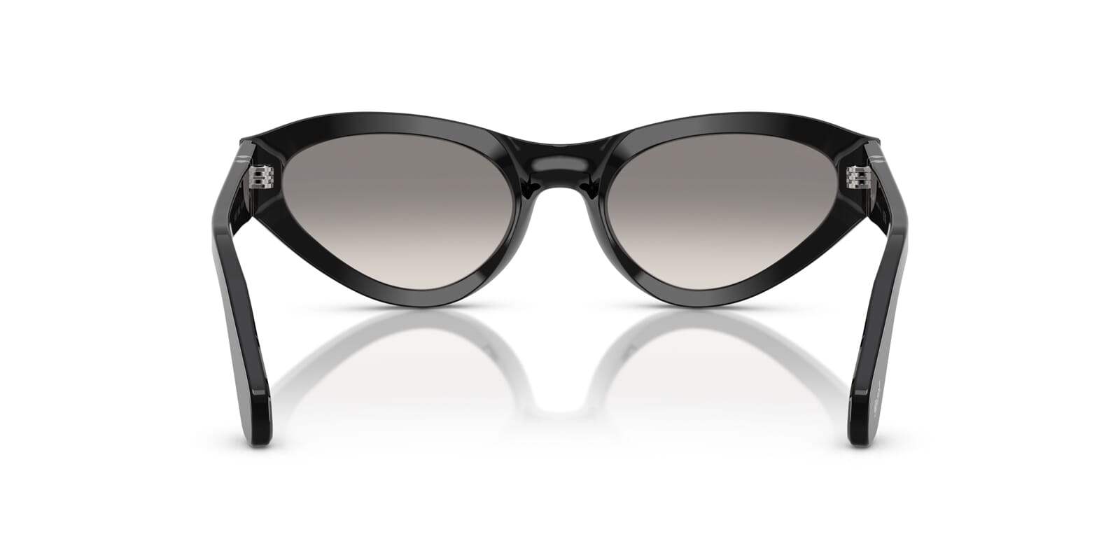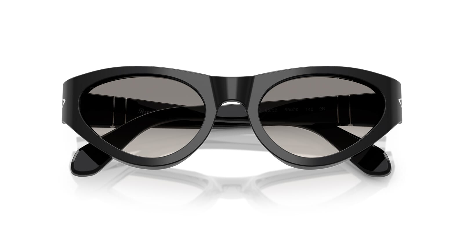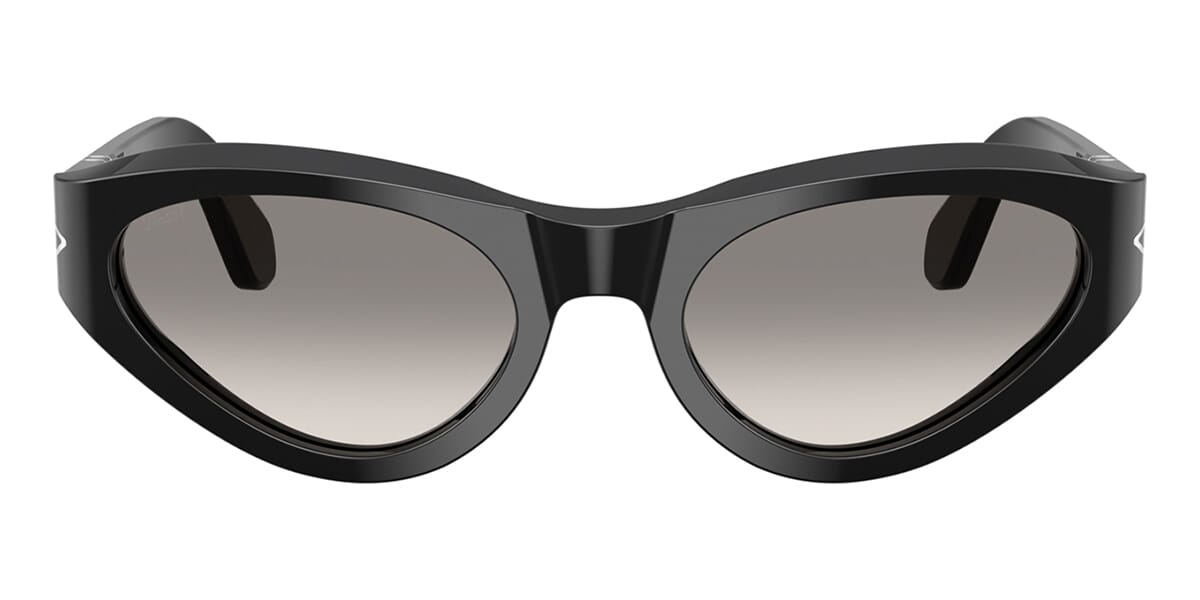 This butterfly Persol sunglass comes in a black frame with clear grey gradient lenses.