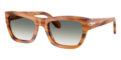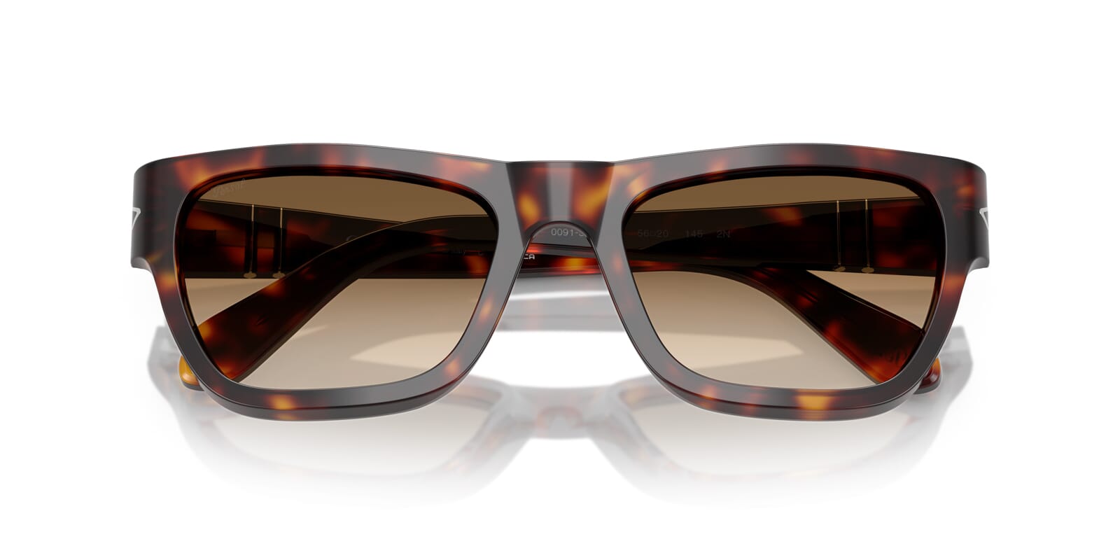 This square Persol sunglass comes in a havana frame with clear brown gradient lenses.