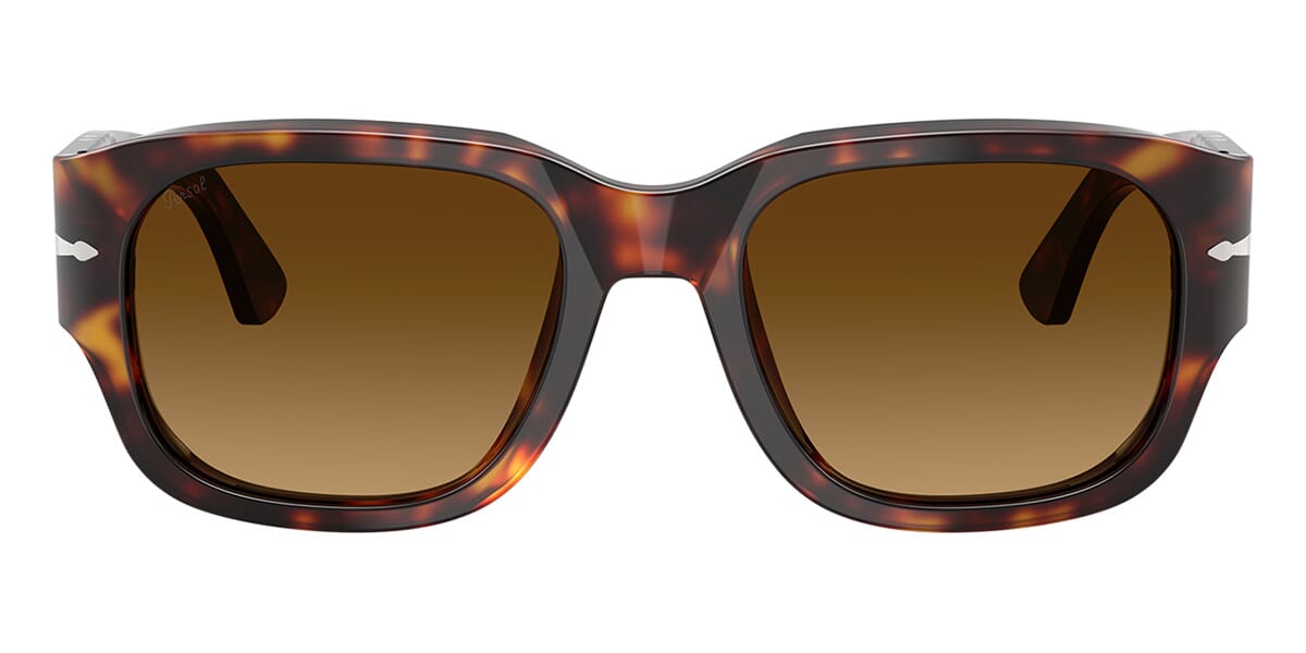This square Persol sunglass comes in a havana frame with dark brown to light brown gradient lenses.