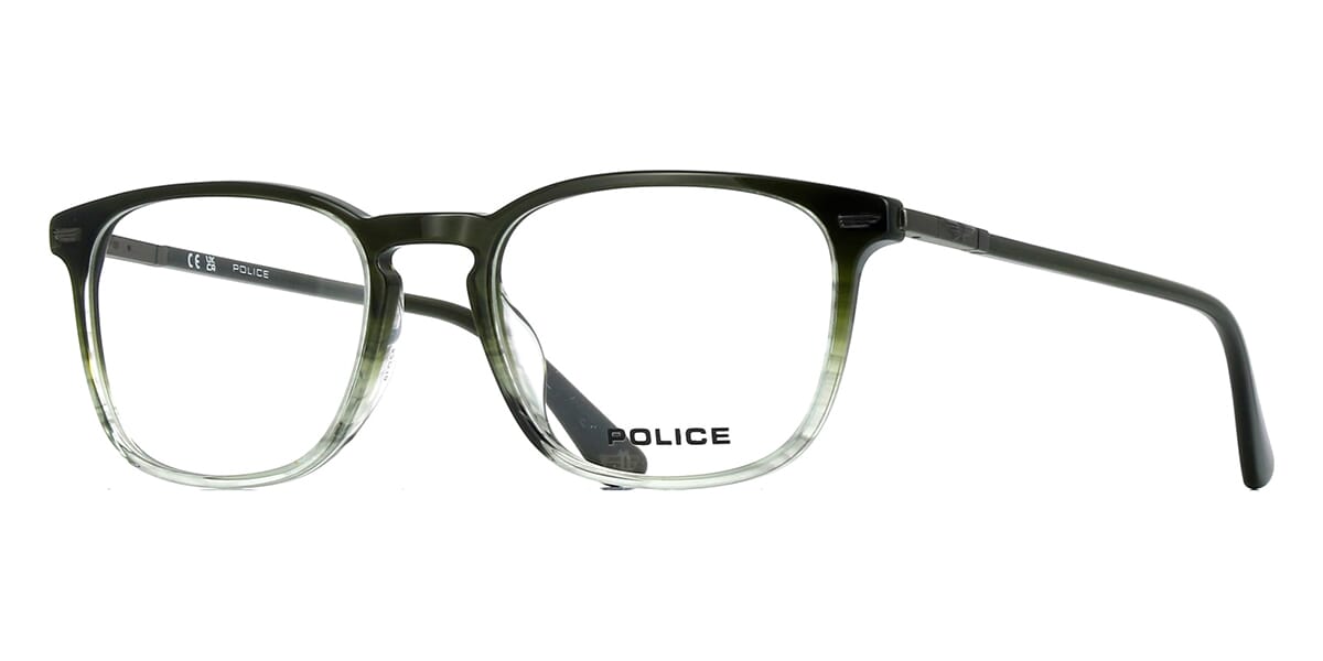 This square Police optical comes in a green crystal frame.