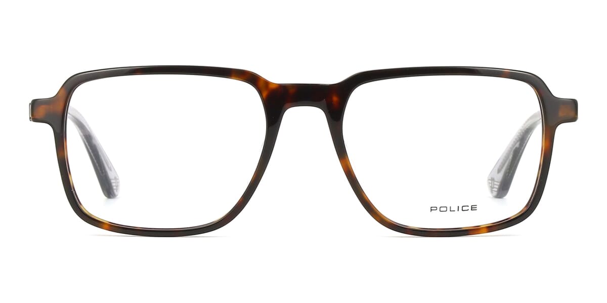 This square Police optical comes in a shiny dark havana frame.