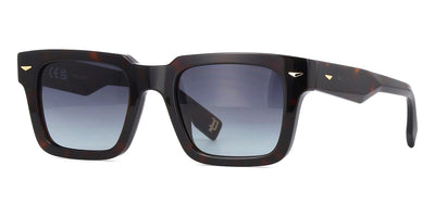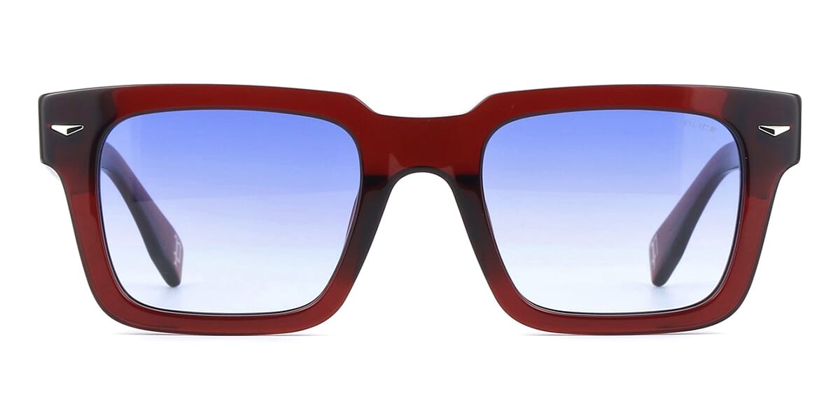This square Police sunglass comes in a shiny dark brown frame with blue to clear gradient lenses.