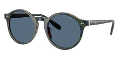 This round Polo sunglass comes in a shiny red havana frame with bottle green lenses.