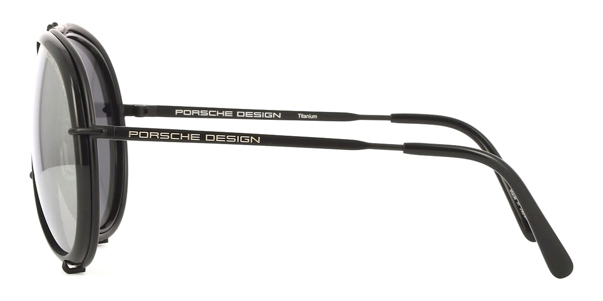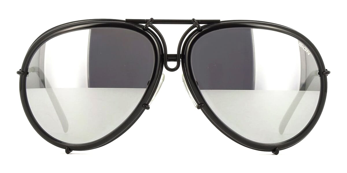 This aviator Porsche Design sunglass comes in a metallic black frame with grey with silver flash mirror lenses.