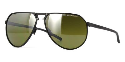 This aviator Porsche Design sunglass comes in a matte dark ruthenium with matte black frame with brown smoke with blue mirror lenses.