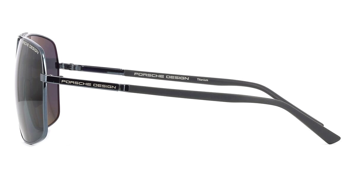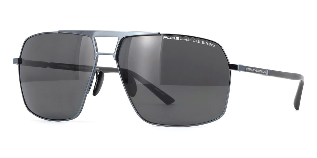 This aviator Porsche Design sunglass comes in a light blue frame with grey with light mirror polarised lenses.