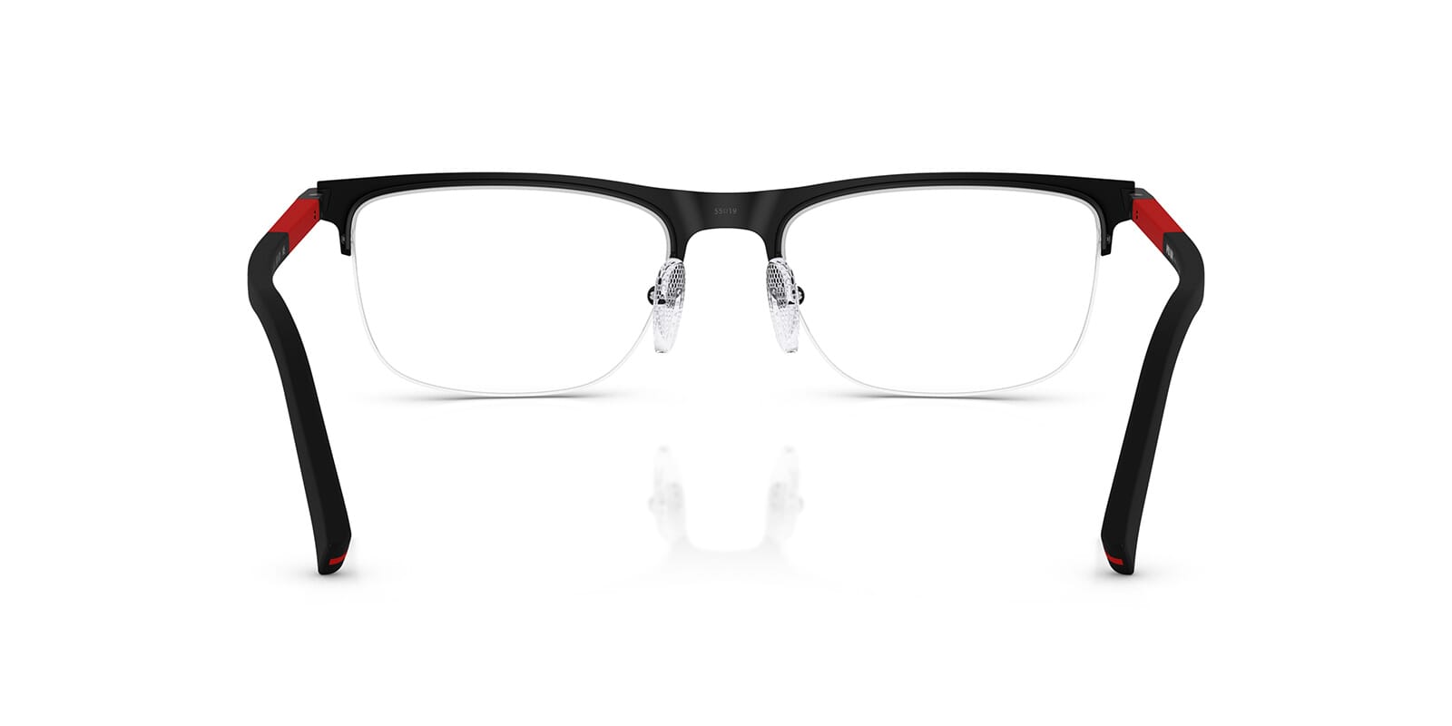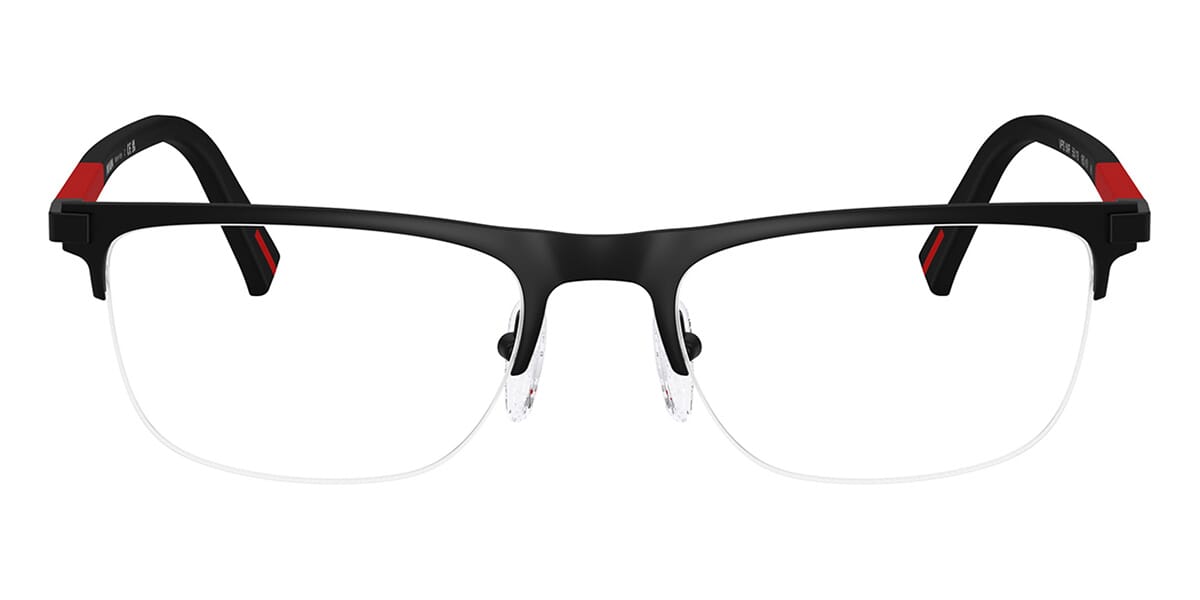 This rectangular Prada Linea Rossa optical comes in a matte black frame.