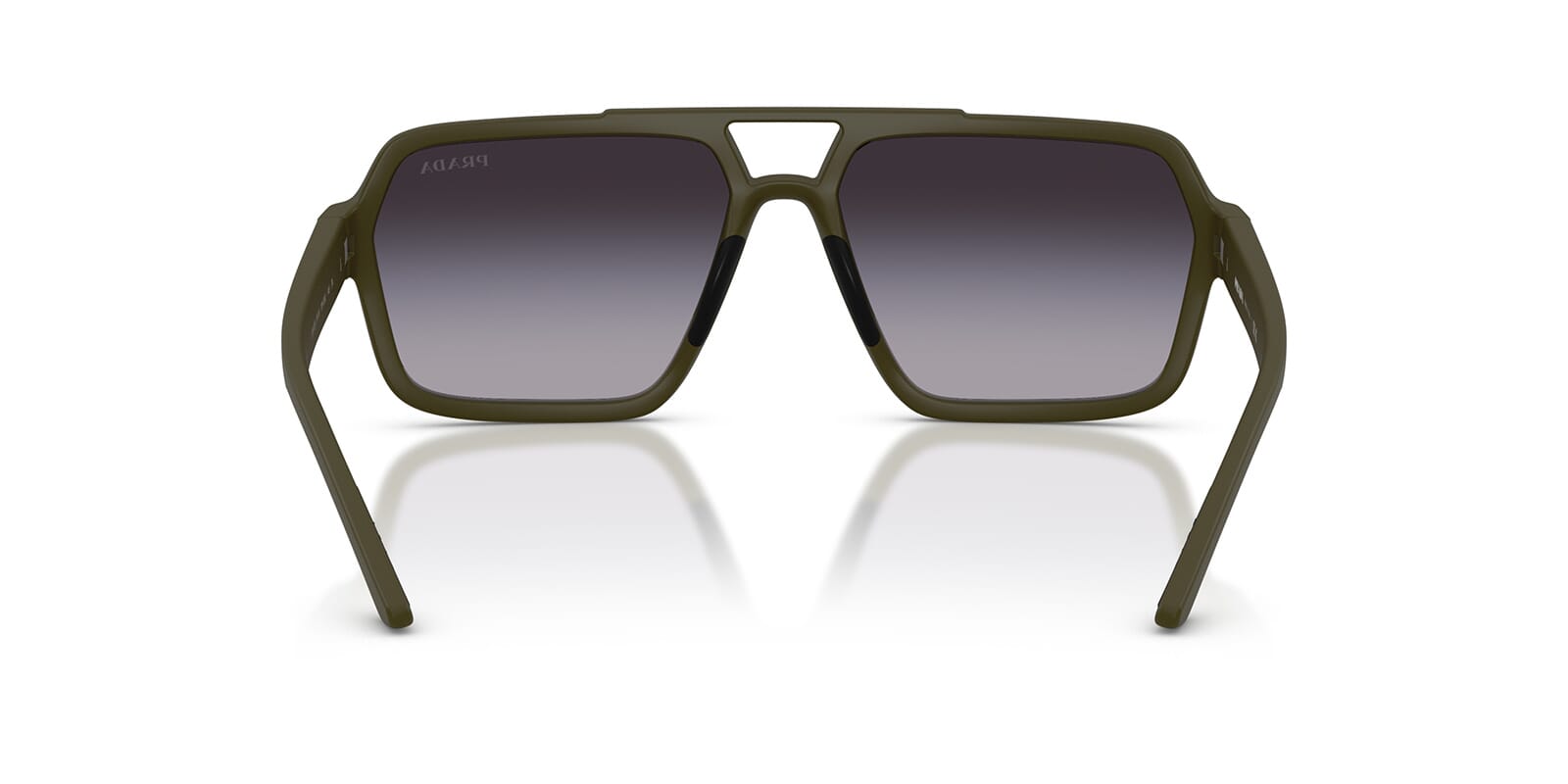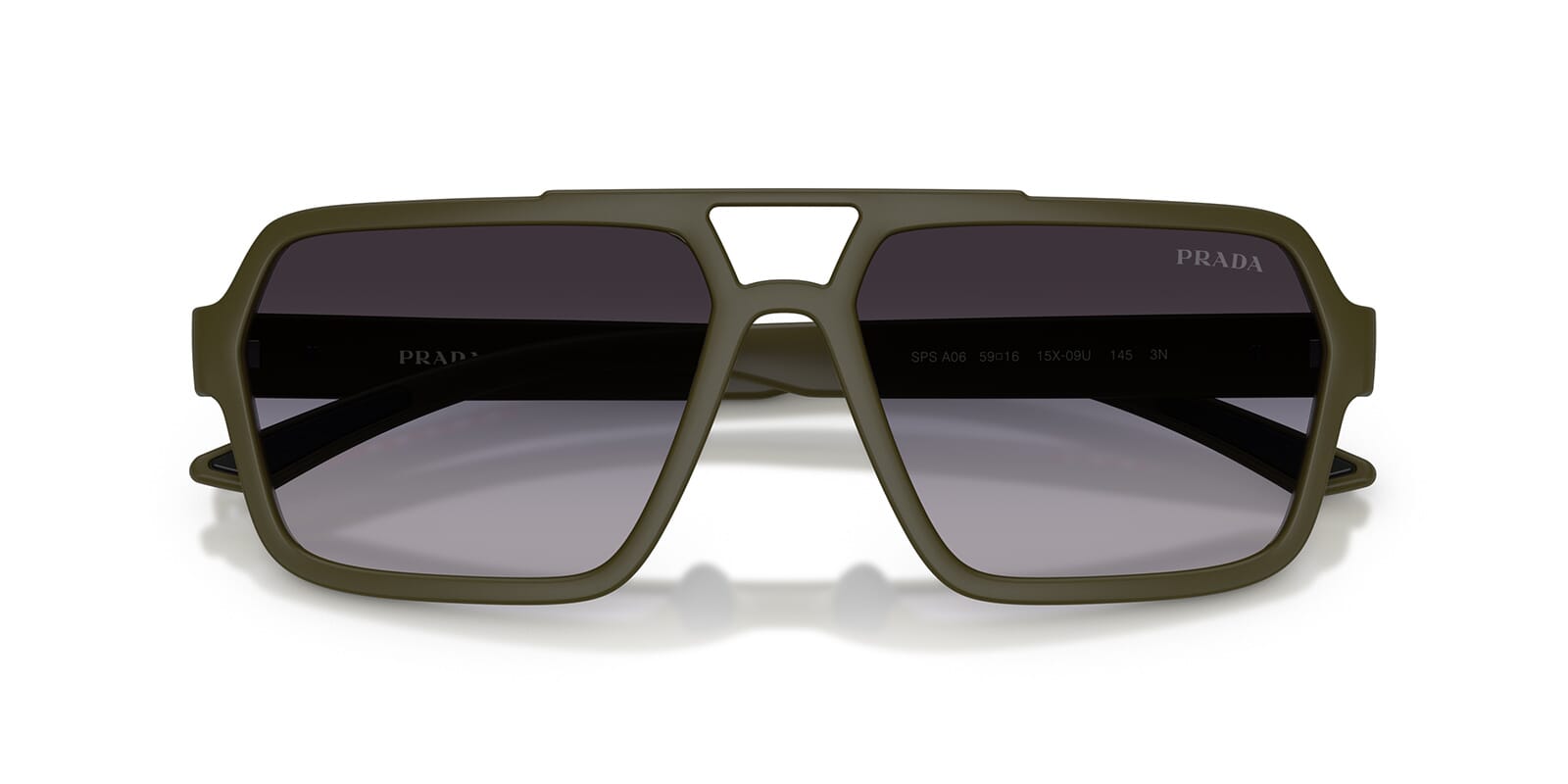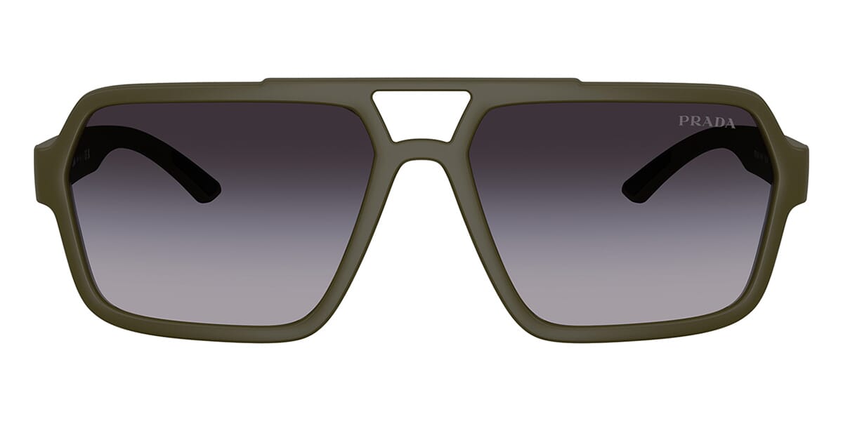 This aviator Prada Linea Rossa sunglass comes in a matte green frame with grey gradient lenses.