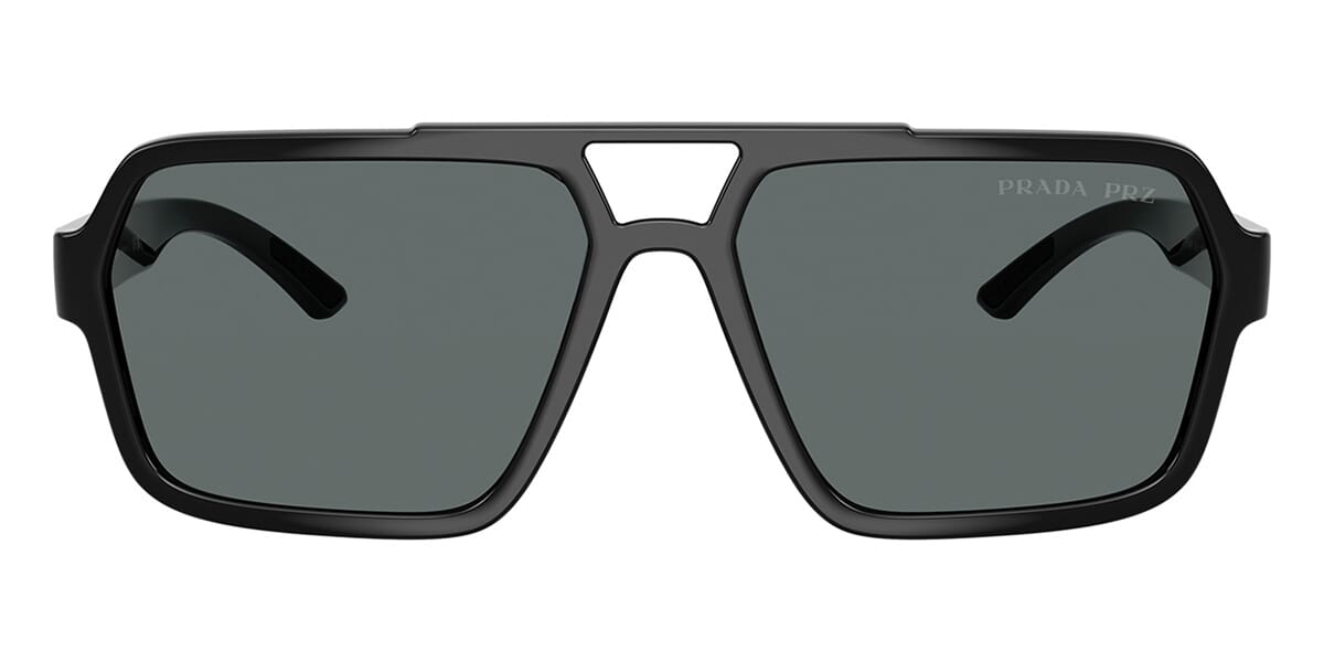 This aviator Prada Linea Rossa sunglass comes in a black frame with dark grey polarised lenses.
