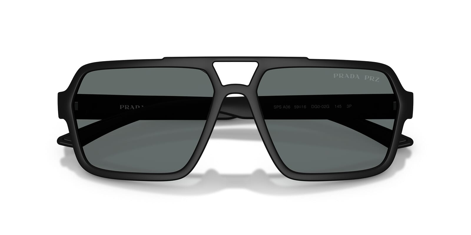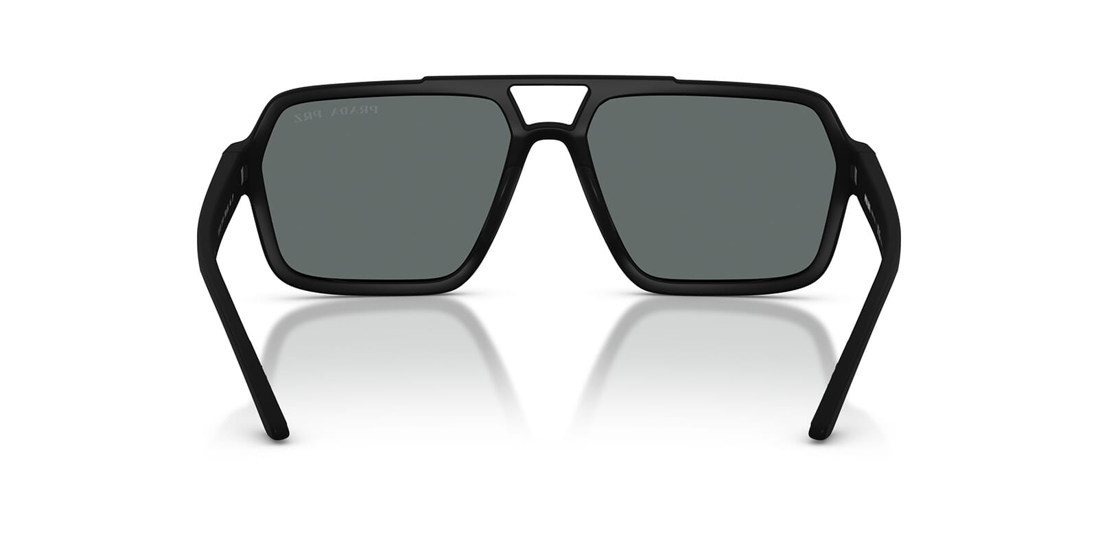This aviator Prada Linea Rossa sunglass comes in a black rubbero frame with dark grey polarised lenses.