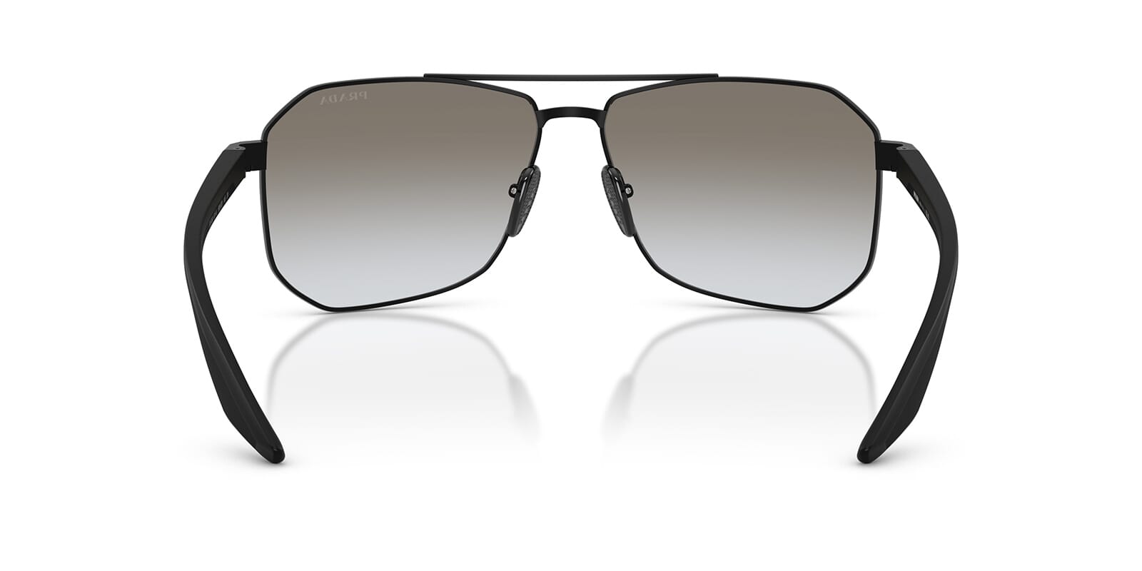This aviator Prada Linea Rossa sunglass comes in a matte black frame with grey gradient lenses.