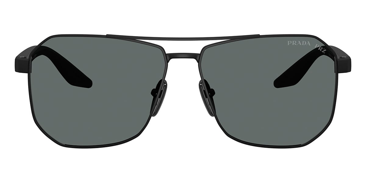 This aviator Prada Linea Rossa sunglass comes in a rubber black frame with dark grey polarised lenses.