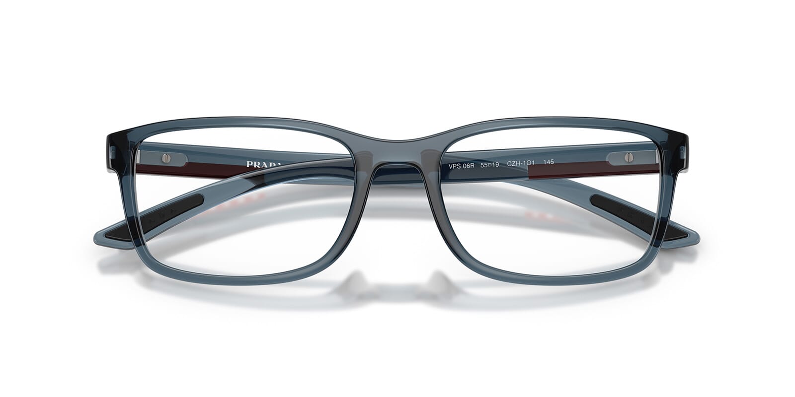 This rectangular Prada Linea Rossa optical comes in a azure crystal frame.