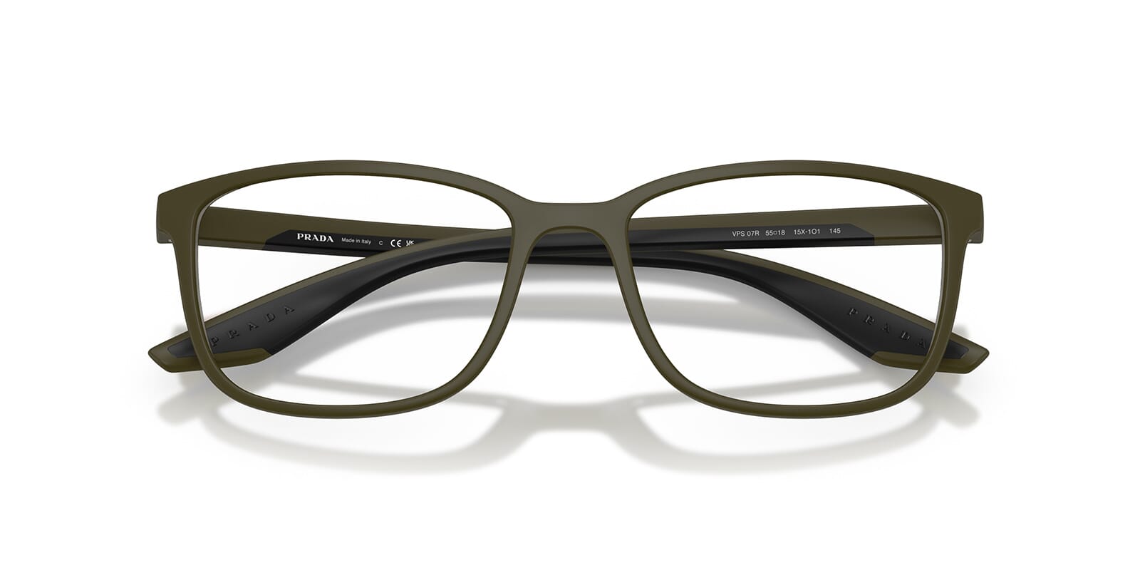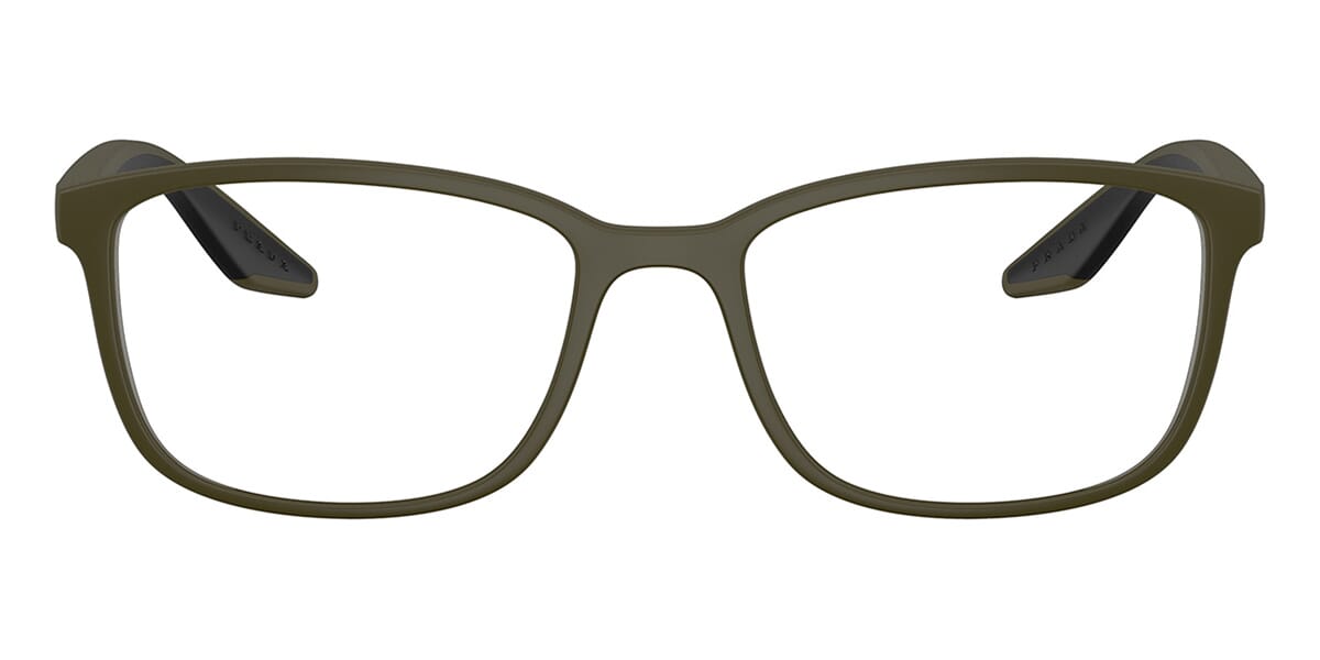 This rectangular Prada Linea Rossa optical comes in a matte green frame.