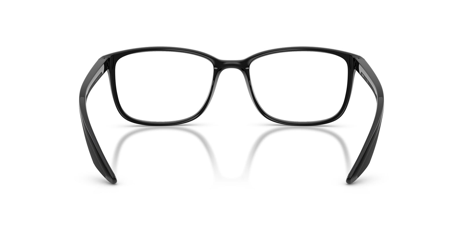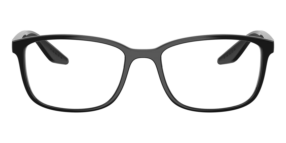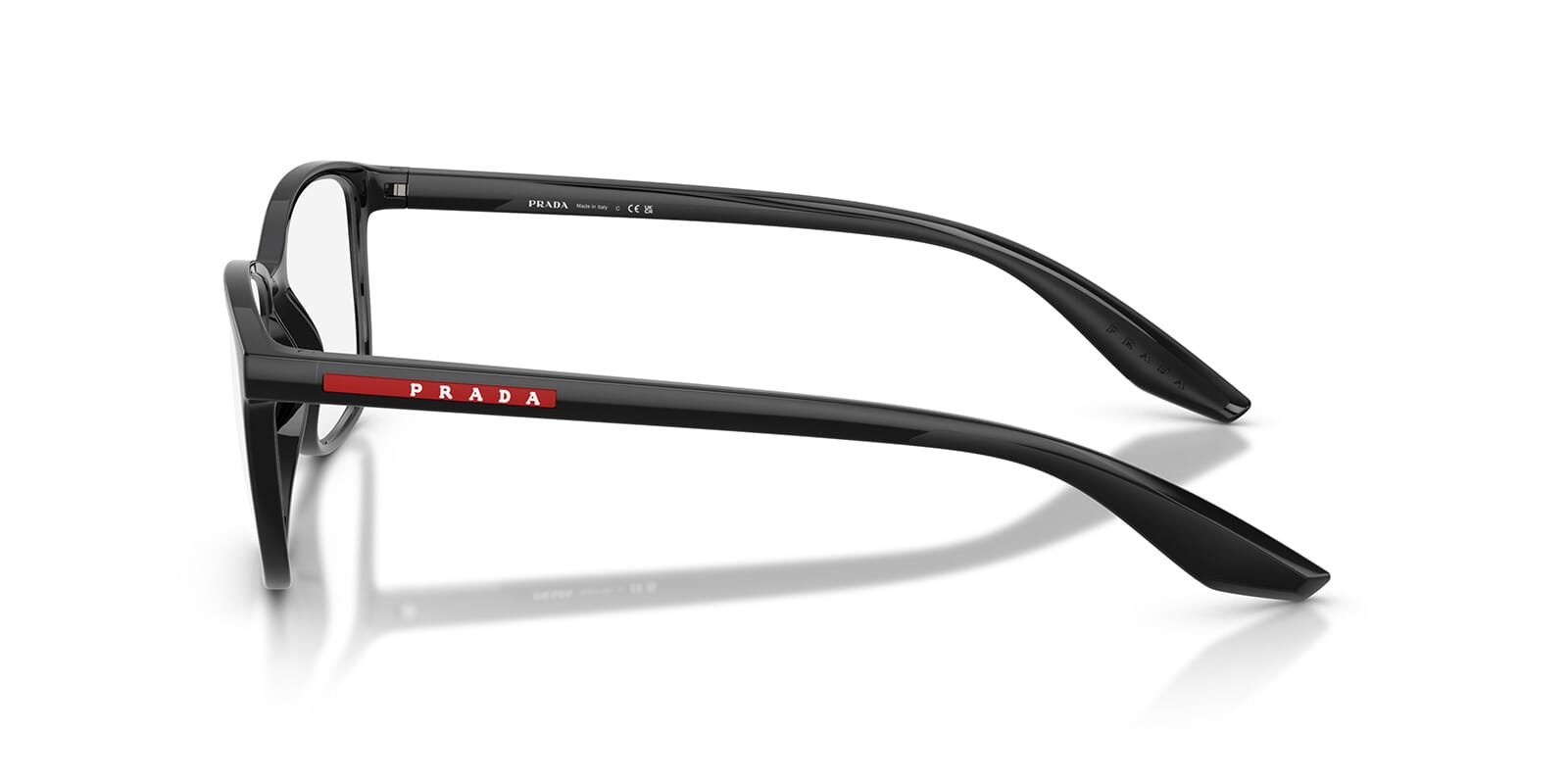 This rectangular Prada Linea Rossa optical comes in a black frame.