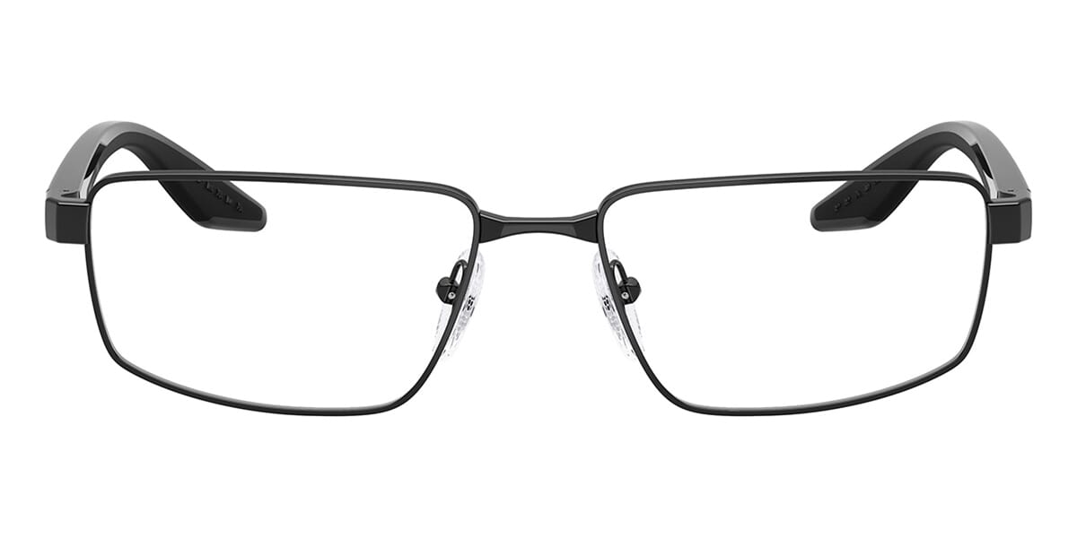 This rectangular Prada Linea Rossa optical comes in a black frame.