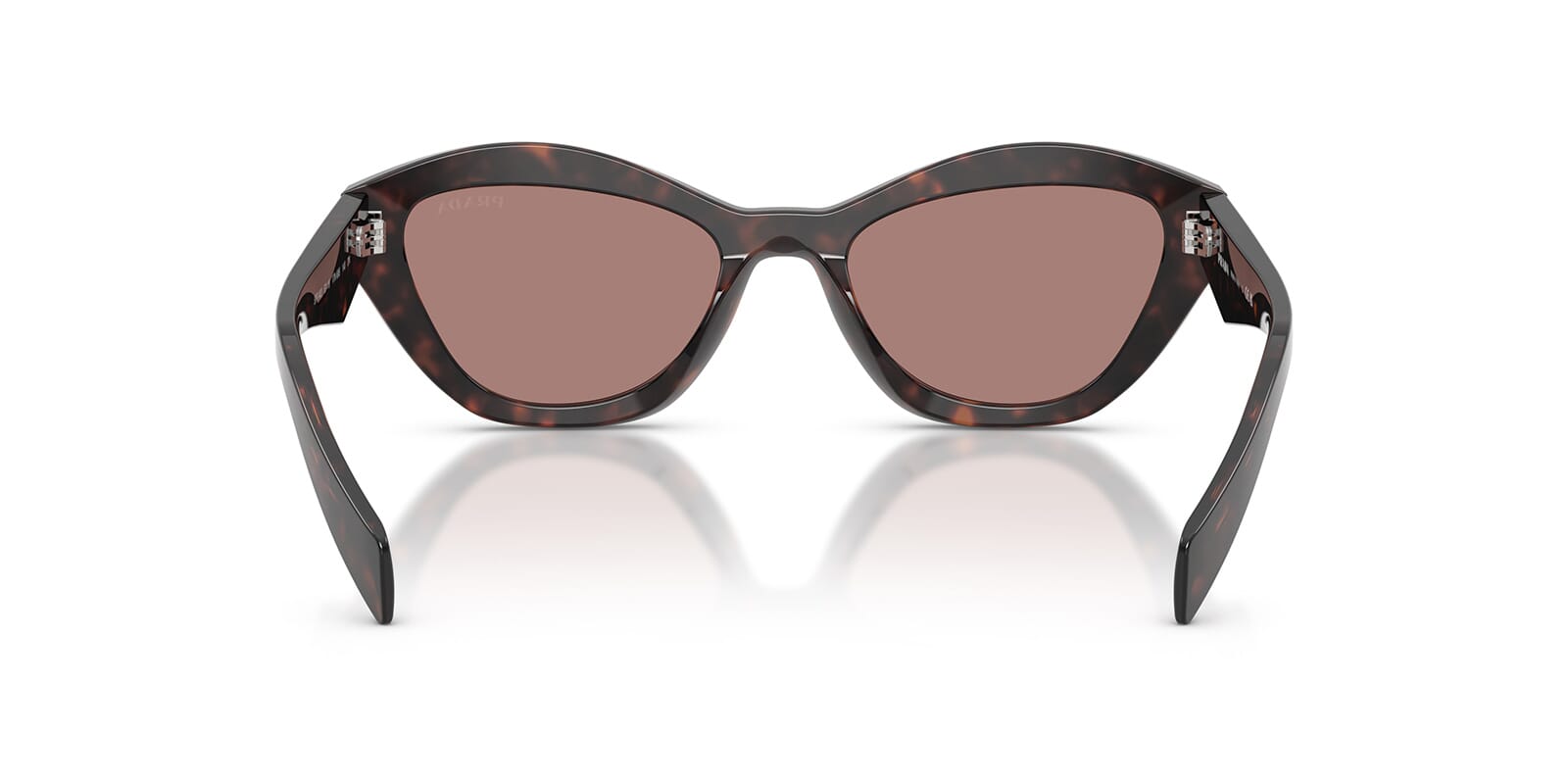 This cat eye Prada sunglass comes in a root tortoise frame with light brown lenses.
