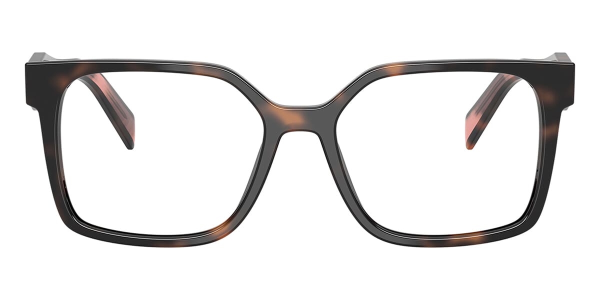 This rectangular Prada optical comes in a mauve tortoise frame.