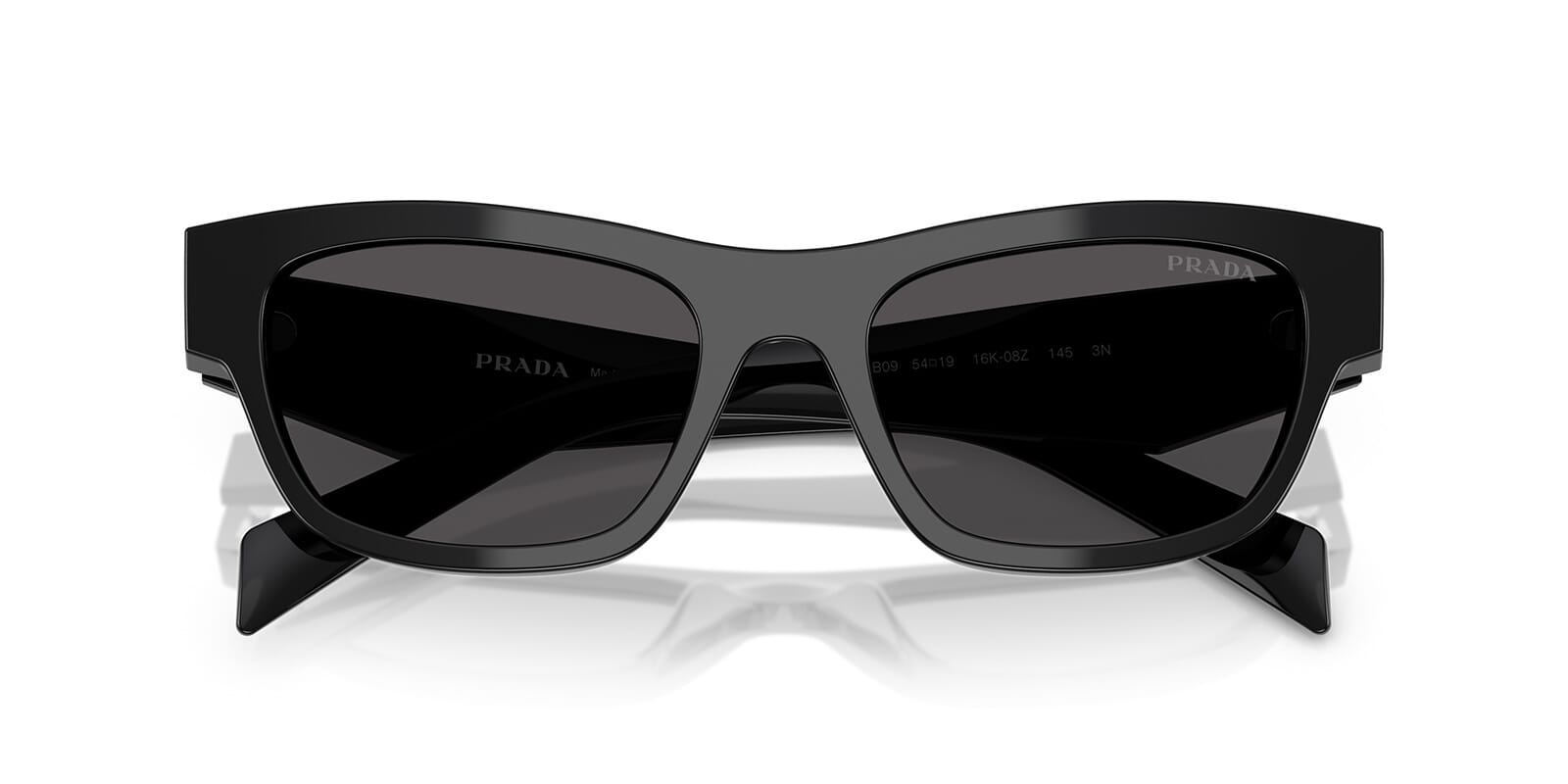 This butterfly Prada sunglass comes in a black frame with dark grey lenses.