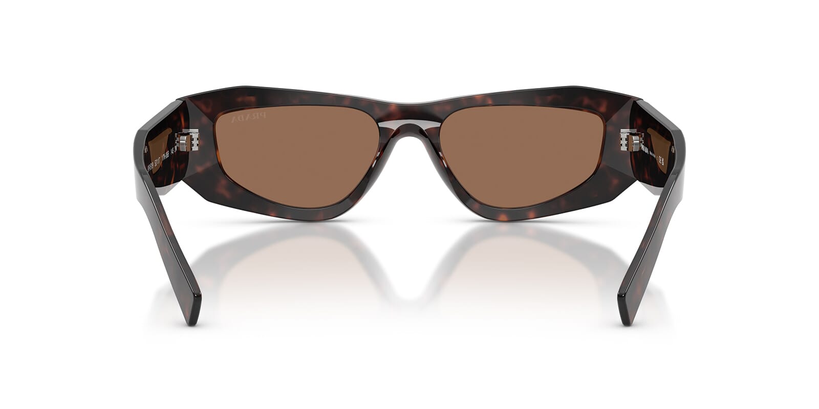 This rectangular Prada sunglass comes in a root tortoise frame with dark brown lenses.