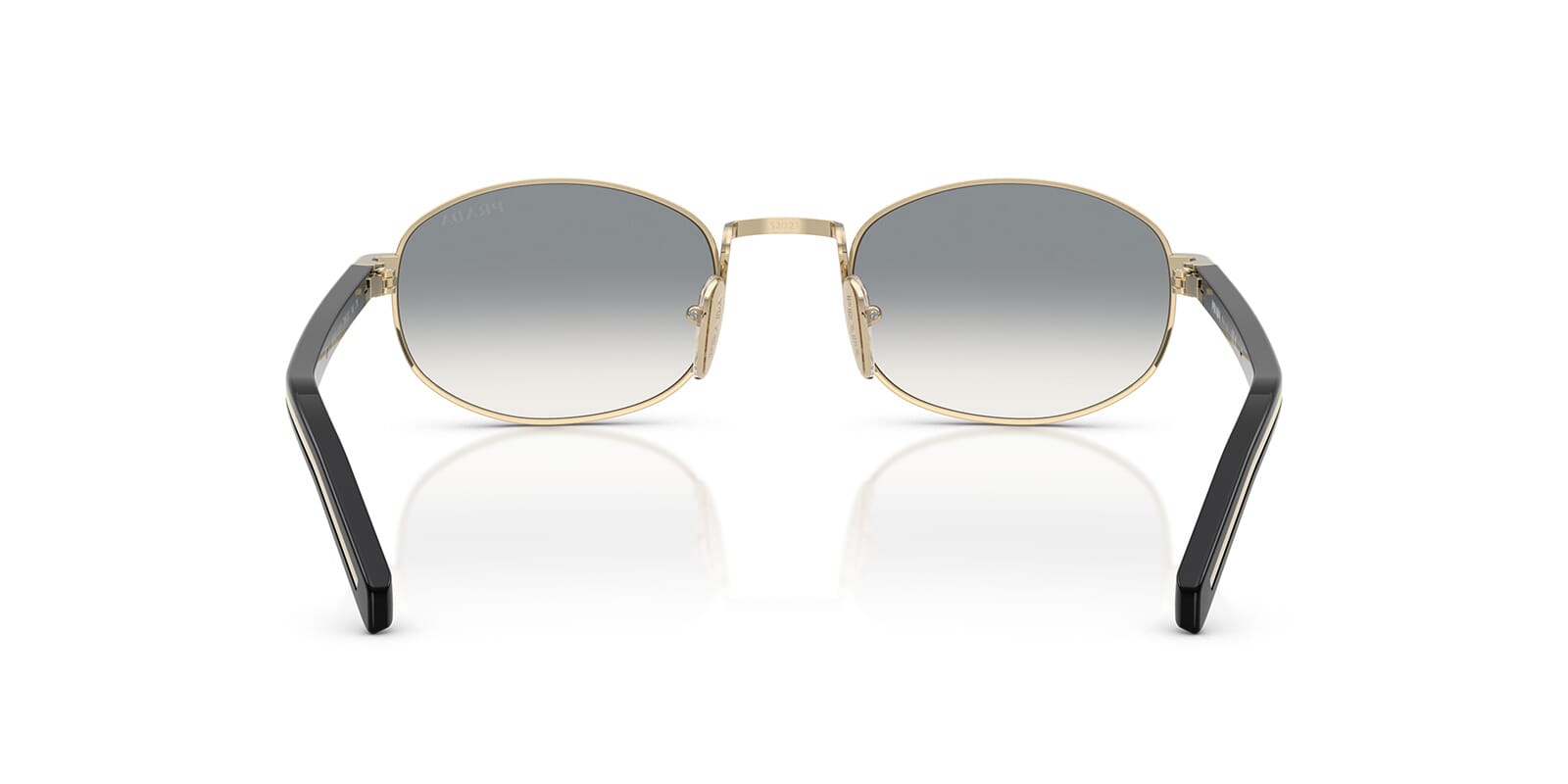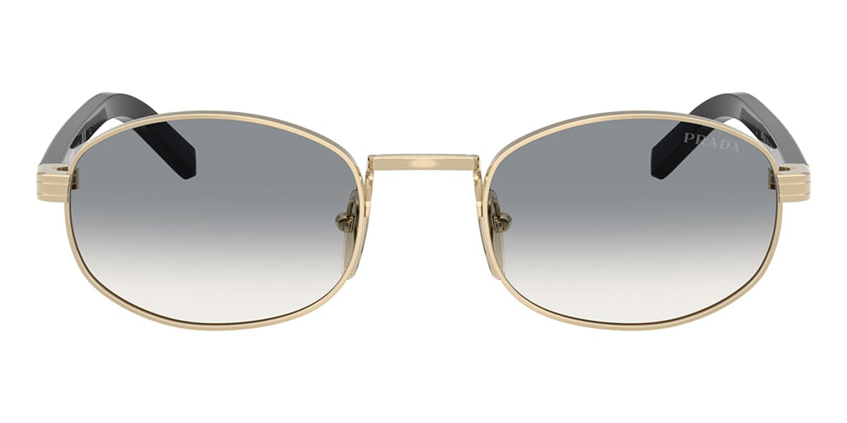 This round Prada sunglass comes in a pale gold frame with grey gradient lenses.