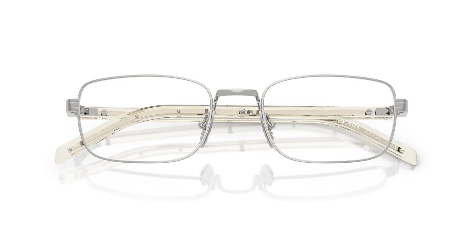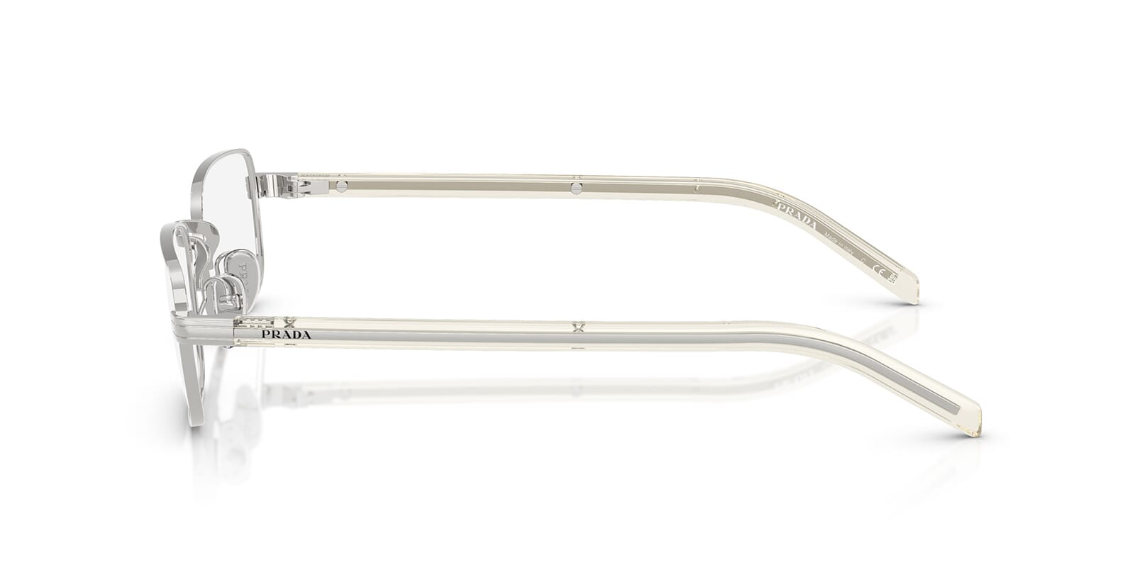 This rectangular Prada optical comes in a silver frame.
