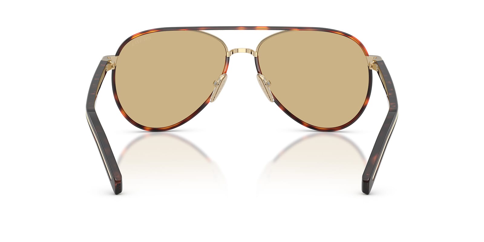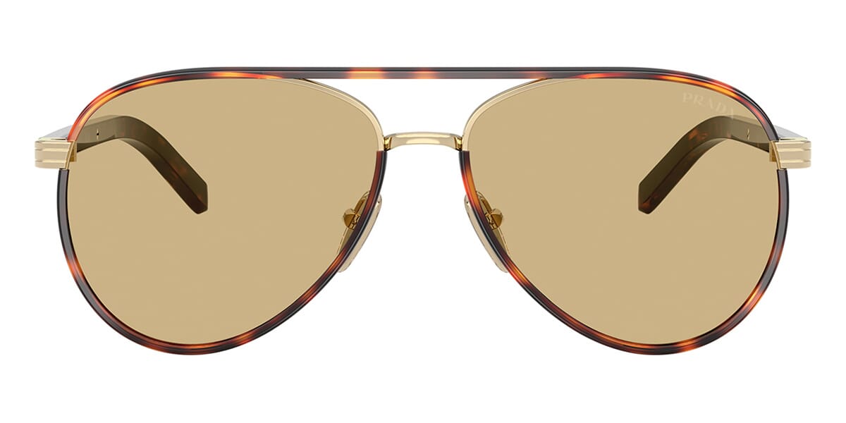 This aviator Prada sunglass comes in a pale gold frame with yellow lenses.