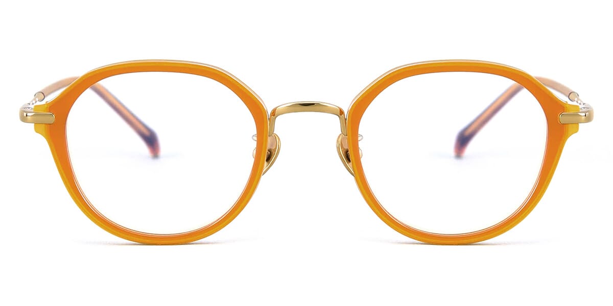This round Projekt Produkt optical comes in a orange and gold frame.