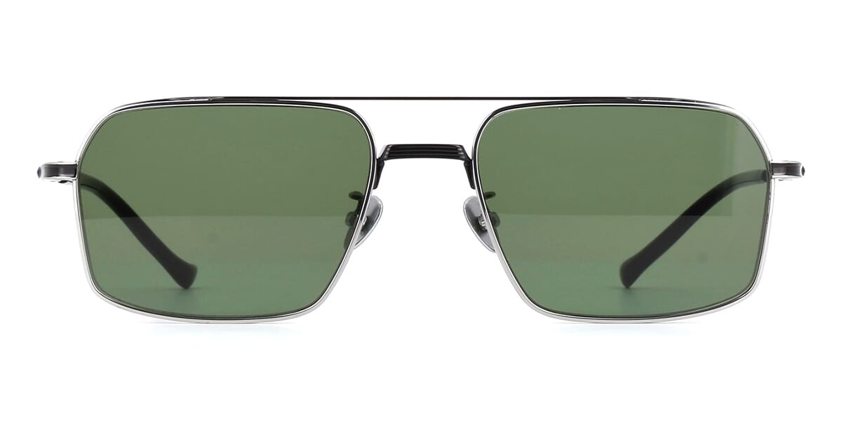 This square Projekt Produkt sunglass comes in a shiny silver and black frame with green with light mirror lenses.