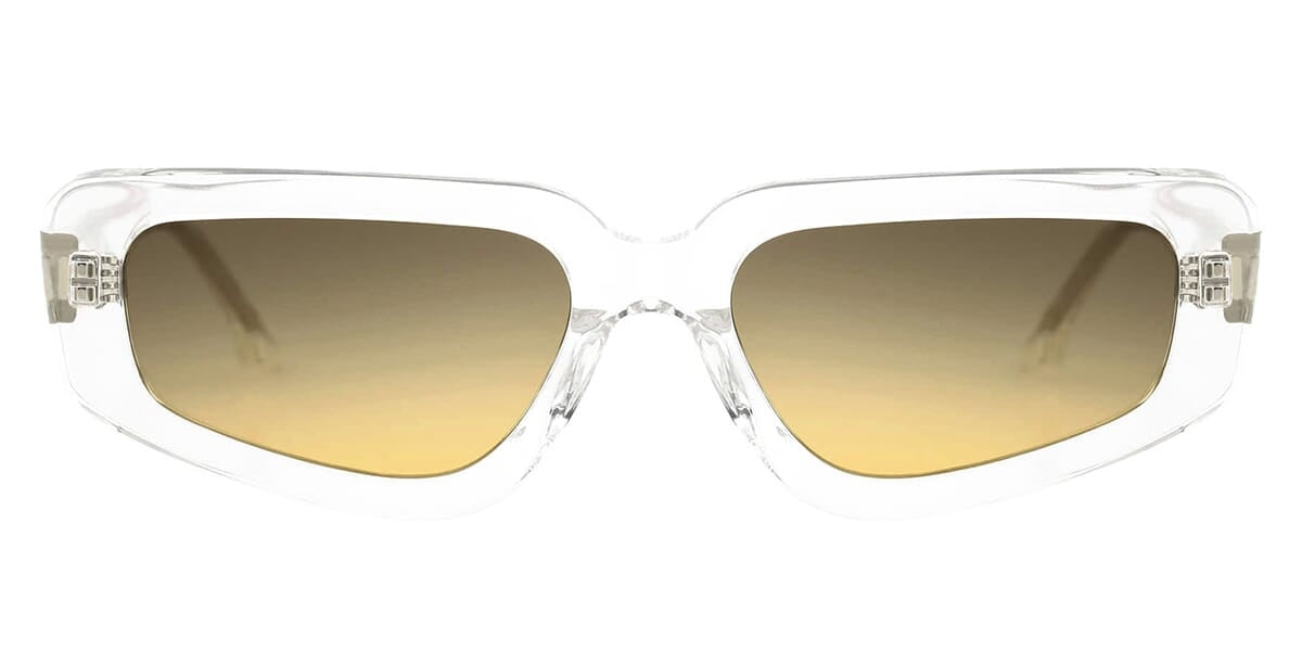 This cat eye Projekt Produkt sunglass comes in a clear frame with brown lenses.