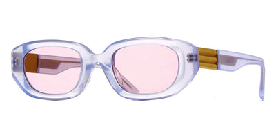 This square Projekt Produkt sunglass comes in a peach pink to orange gradient with gold frame with green lenses.