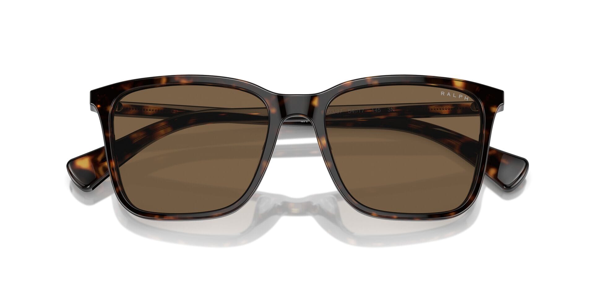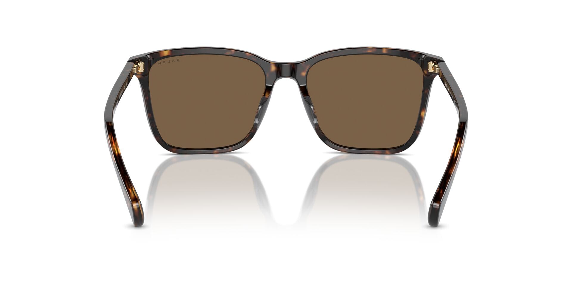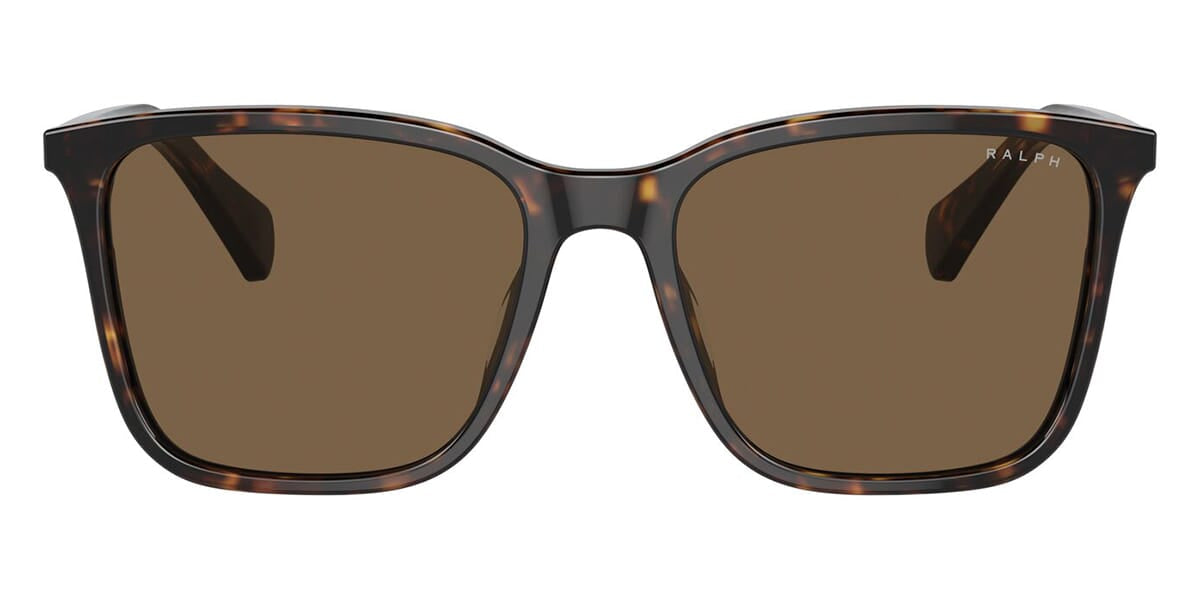 This square Ralph by Ralph Lauren sunglass comes in a shiny dark havana frame with brown lenses.