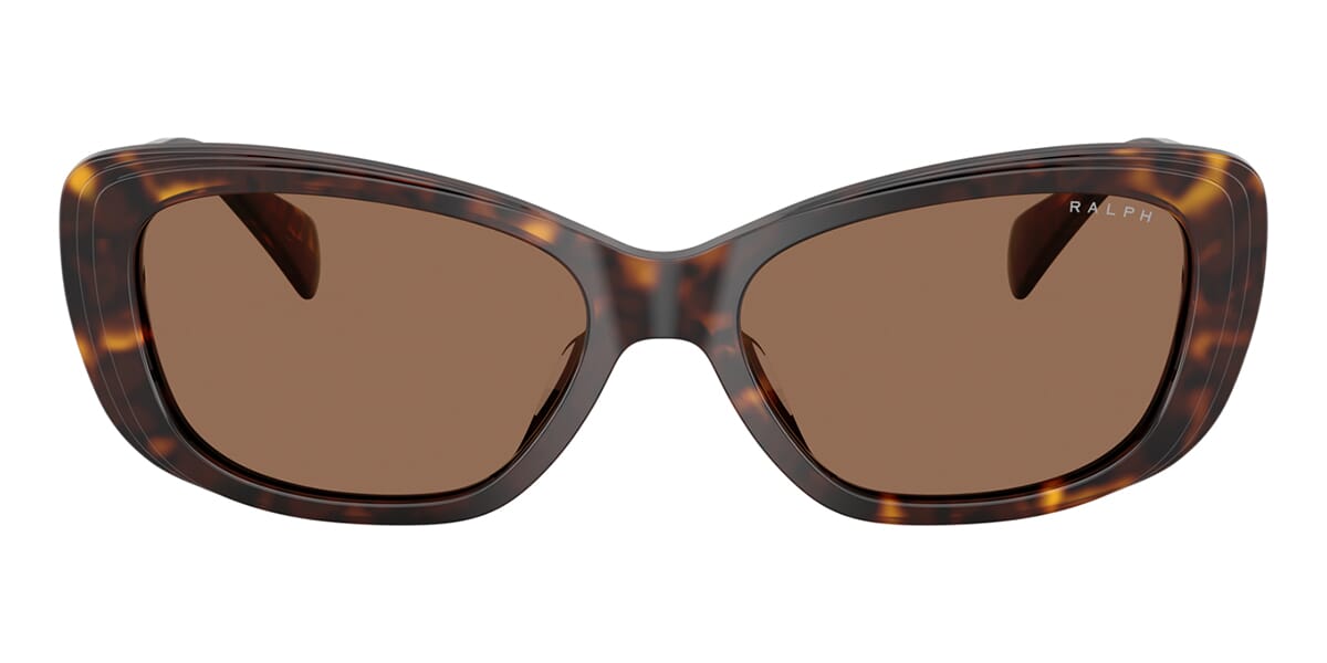 This rectangular Ralph by Ralph Lauren sunglass comes in a shiny dark havana frame with brown lenses.