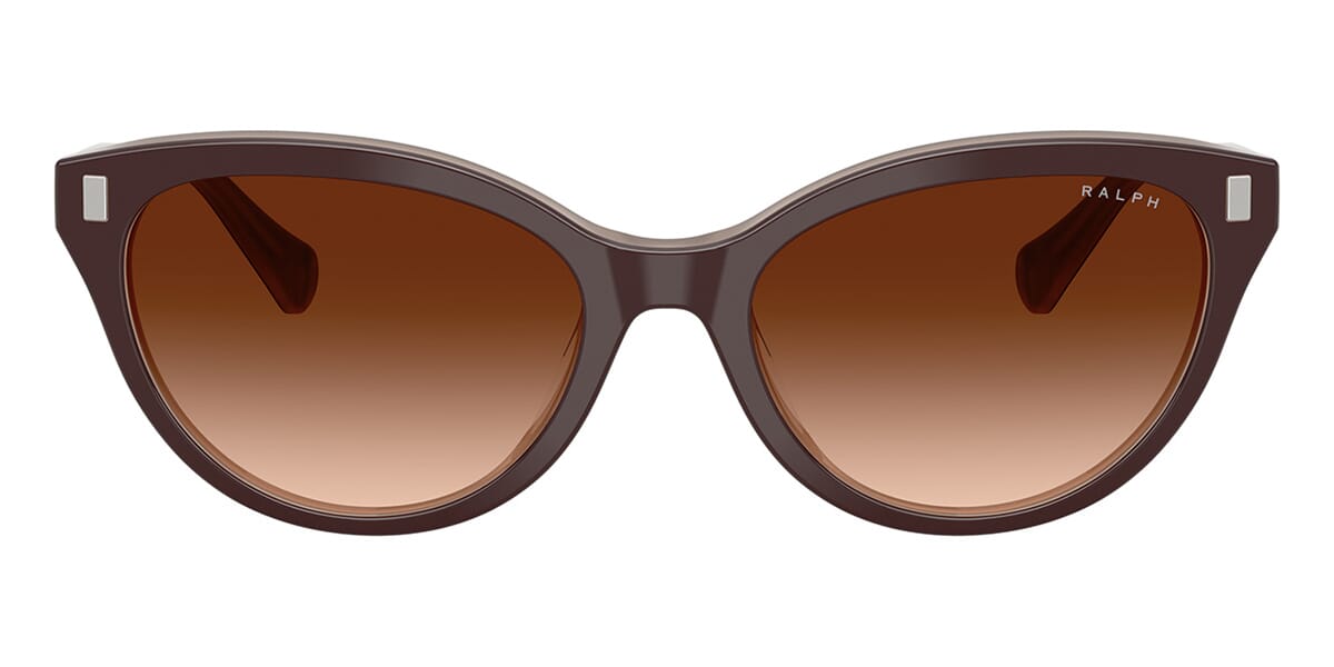 This cat eye Ralph by Ralph Lauren sunglass comes in a solid brown milky brown frame with brown gradient lenses.